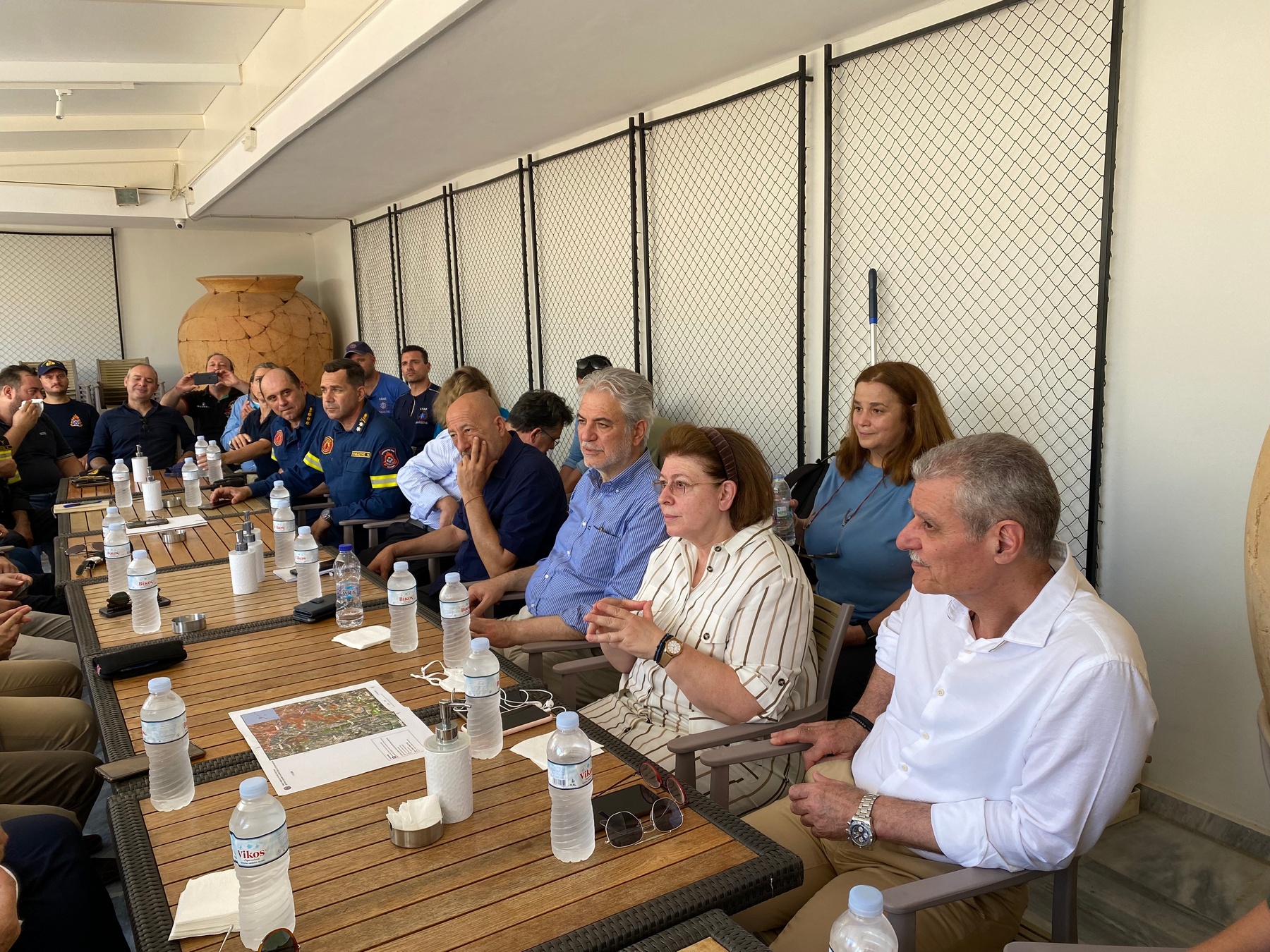 Όπως δήλωσε η Υπουργός Πολιτισμού και Αθλητισμού Λίνα Μενδώνη, «Είμαστε σήμερα στην Αρχαία Ολυμπία, με τις αρμόδιες υπηρεσίες της Πυροσβεστικής Υπηρεσίας, της Αρχαιολογικής Υπηρεσίας και του Δασαρχείου, προκειμένου όλοι οι εμπλεκόμενοι να δουν τι πρέπει να κάνουν στην περίπτωση που ξεσπάσει πυρκαγιά, μέσα ή κοντά στον αρχαιολογικό χώρο. Δουλέψαμε και δουλεύουμε συστηματικά με το Υπουργείο Κλιματικής Κρίσης και Πολιτικής Προστασίας και με το Υπουργείο Περιβάλλοντος, ακολουθώντας την οδηγία του Πρωθυπουργού Κυριάκου Μητσοτάκη για πρόληψη, προετοιμασία και συντονισμό. Είναι η πρώτη φορά που οι Υπηρεσίες των τριών Υπουργείων, από τον Ιανουάριο του 2022, δουλεύουν συστηματικά και συνεργάζονται, σε εβδομαδιαία βάση, προκειμένου να κατανοήσει ο ένας τη δουλειά και την αρμοδιότητα του άλλου και όλοι μαζί να συντονιστούν για να προστατέψουν το μείζον αγαθό την ανθρώπινη ζωή, τον αρχαιολογικό χώρο, το δάσος. Η κλιματική κρίση είναι εδώ, δημιουργεί προβλήματα ηυξημένα ξαφνιάζοντας πολλές φορές με την σφοδρότητά της. Γι' αυτό έχει σημασία η συστηματική πρόληψη και η προετοιμασία».
