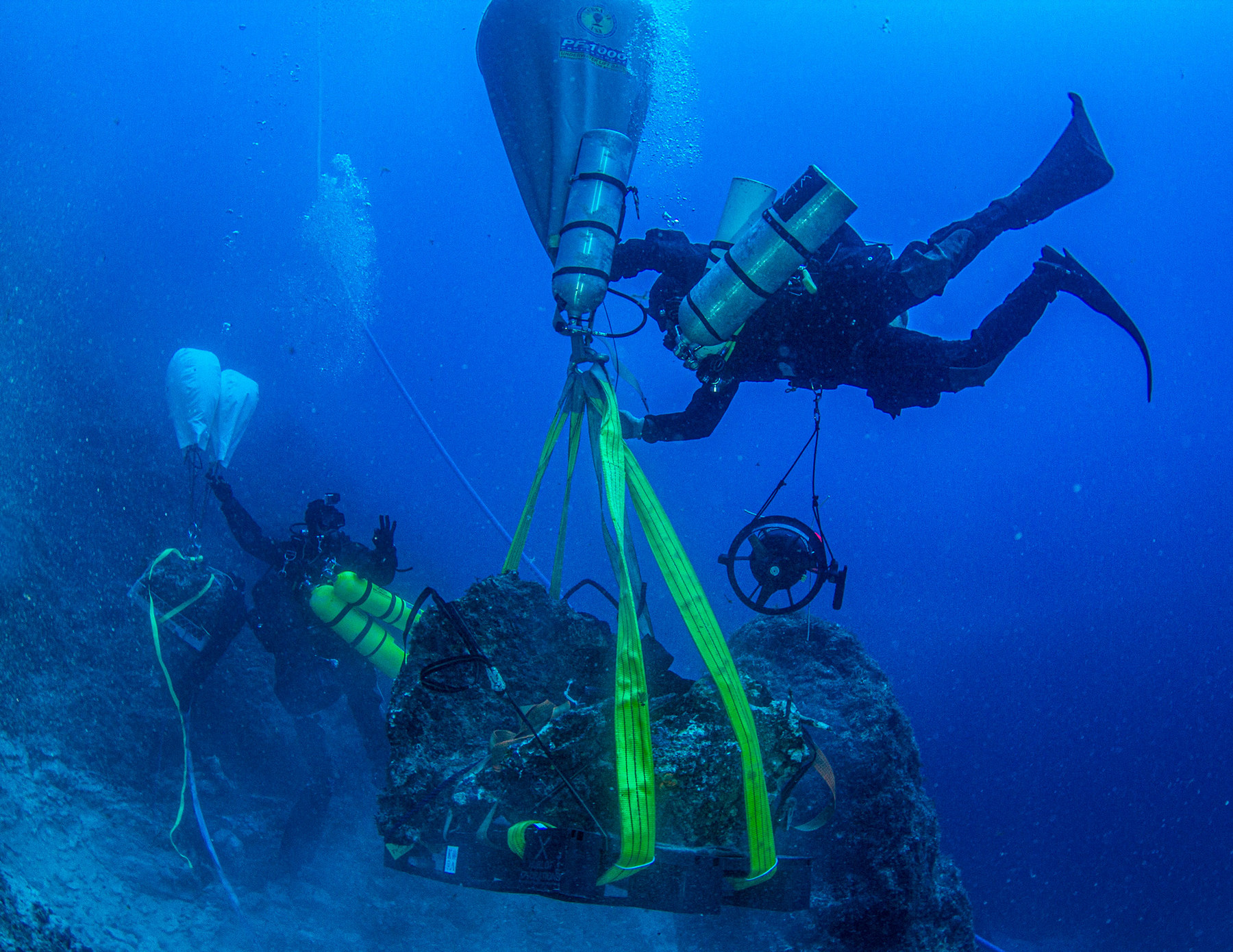Η αποστολή ξεκίνησε με την ανέλκυση ογκωδών βράχων βάρους πολλών τόνων, οι οποίοι κάλυπταν τμήμα του ναυαγίου. Κατά τη φάση αυτή χρησιμοποιήθηκαν ειδικοί σάκοι ανέλκυσης από τον βυθό, με την καινοτομία της εφαρμογής του συστήματος πλήρωσης αέρα από το σκάφος, που ανέπτυξε η ομάδα της Hublot Xplorations.