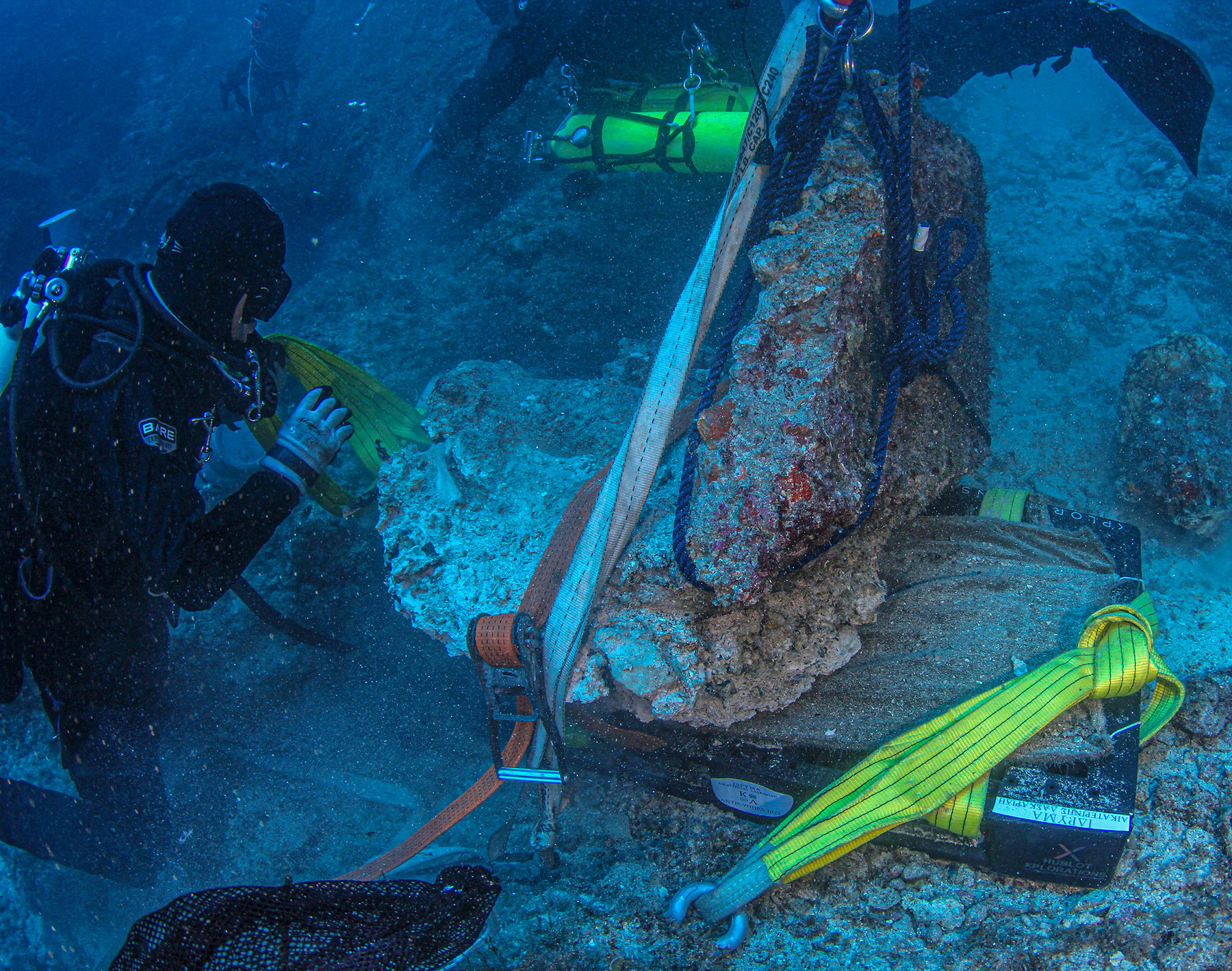 Για τη διεξαγωγή της υποβρύχιας έρευνας και ανασκαφής έγιναν καταδύσεις από εξειδικευμένο καταδυόμενο προσωπικό, με τη χρήση συσκευών κατάδυσης μεικτών αερίων. Στο καταδυτικό έργο συνέδραμαν εκτός από τους δύτες του Λιμενικού Σώματος, επιστημονικό και τεχνικό προσωπικό του τμήματος έρευνας και ανάπτυξης της εταιρείας Ηublot, και το ειδικό πλοίο TYPHOON, το οποίο διέθεσε το Κοινωφελές Ίδρυμα Αθανασίου Κ. Λασκαρίδη.