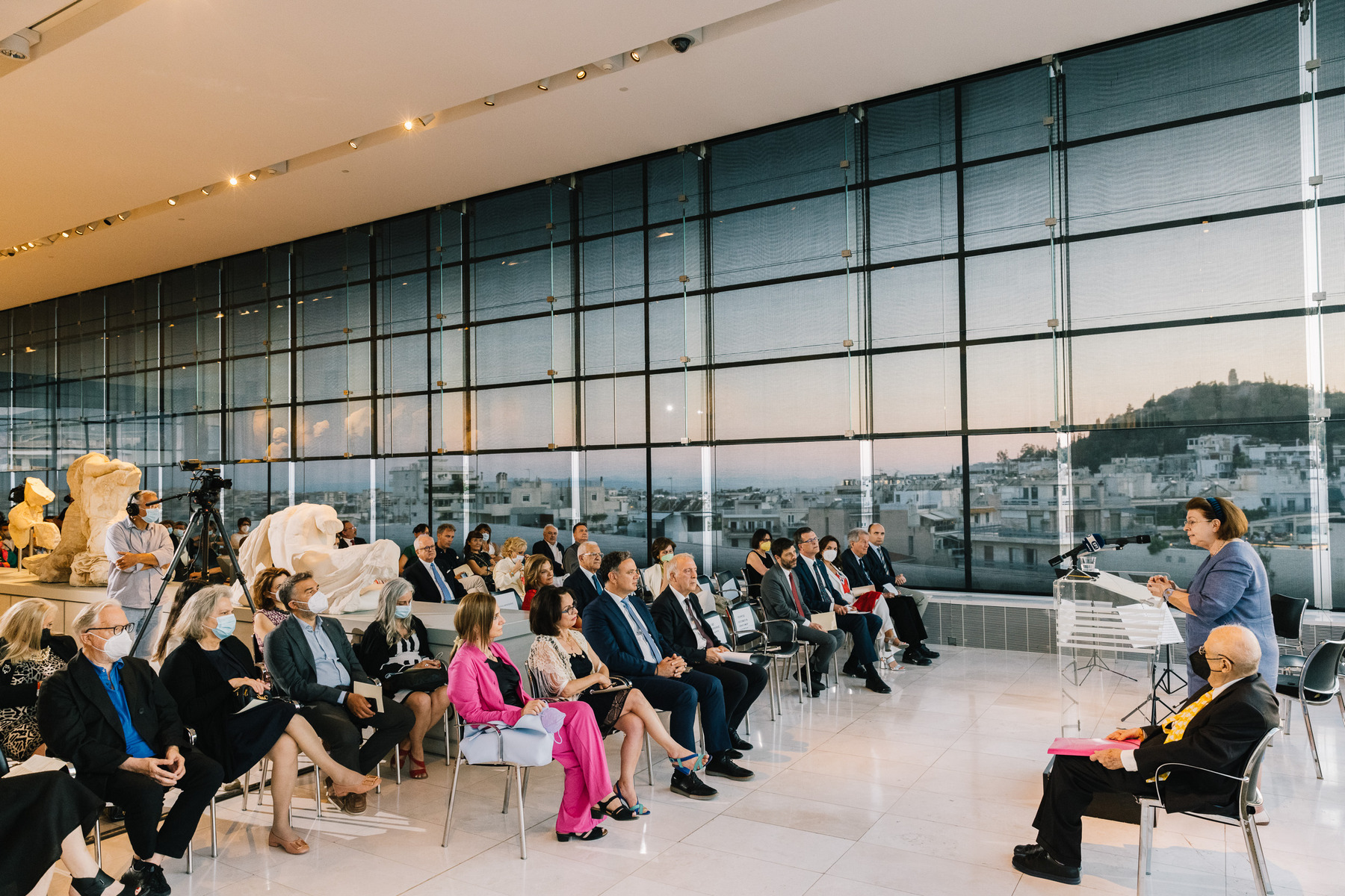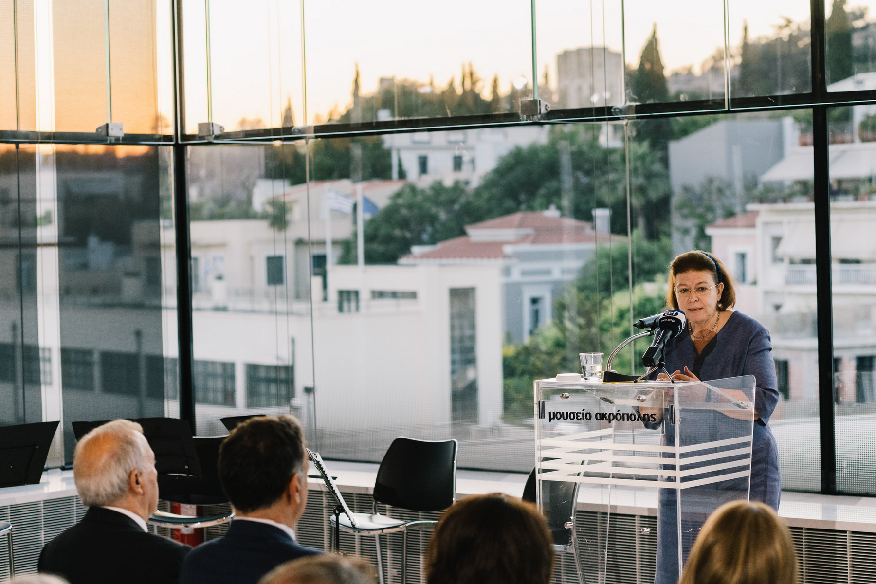 Η Υπουργός αναφέρθηκε στην ιστορία ίδρυσης του Μουσείου και στην υψηλή θέση που κατέχει παγκοσμίως στην προτίμηση των επισκεπτών, καθώς και στο διοικητικό πλαίσιο, το οποίο επιτρέπει μεγαλύτερη ευελιξία. Όπως είπε «στην Ελλάδα, έχουμε το μοναδικό προνόμιο να έχουμε και άλλα μουσεία που έχουν εξίσου σημαντικούς και μοναδικούς θησαυρούς. Εδώ όμως τα πράγματα είναι λίγο καλύτερα, γιατί υπάρχει ένα διαφορετικό νομικό και διοικητικό καθεστώς που επιτρέπει στο συγκεκριμένο μουσείο να προσφέρει πολύ πιο φιλικές υπηρεσίες στους πολυπληθείς επισκέπτες του. Αυτό το Μουσείο αποτελεί το πρότυπο για τη δημιουργία των πέντε μεγάλων μουσείων μας ως Νομικά Πρόσωπα Δημοσίου Δικαίου, που πολύ σύντομα, σε λίγες εβδομάδες, η θεσμοθέτηση των οποίων θα πάρει τον δρόμο της για τη Βουλή των Ελλήνων. Το παράδειγμα του Μουσείου Ακροπόλεως μας δείχνει τον δρόμο. Ο σφιχτός εναγκαλισμός τέτοιων Μουσείων με το κράτος δημιουργεί πολλά προβλήματα, ενώ ένα Νομικό Πρόσωπο Δημοσίου Δικαίου, το οποίο προφανώς ανήκει στο Δημόσιο, προφανώς τελεί υπό την εποπτεία του κράτους και του Υπουργείου Πολιτισμού και Αθλητισμού, έχει δυνατότητες μεγαλύτερης ελευθερίας και ανεξαρτησίας στην εφαρμογή της μουσειακής πολιτικής».