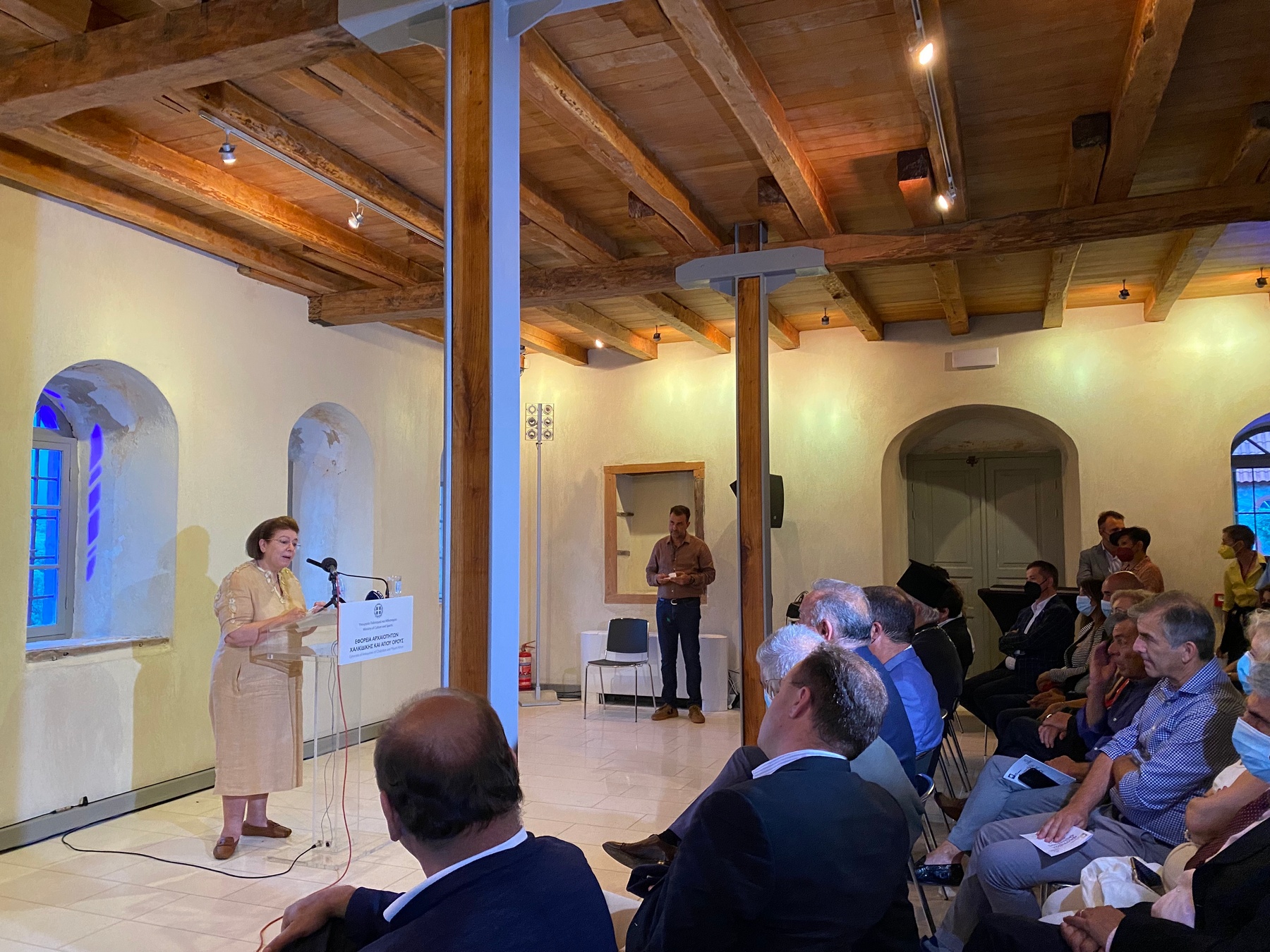 Στον χαιρετισμό της, η Λίνα Μενδώνη ανέφερε: «Στο Παλαιό Κτήριο του μετοχιακού συγκροτήματος φιλοξενείται και ανοίγει σήμερα επίσημα τις πύλες της για το κοινό μία νέα, ιδιαίτερα σημαντική και ενδιαφέρουσα περιοδική έκθεση, με την οποία ολοκληρώνεται ο κύκλος των επετειακών εκδηλώσεων του Υπουργείου Πολιτισμού και Αθλητισμού για τη συμπλήρωση 200 ετών από την έναρξη της Επανάστασης του 1821. Του μεγάλου εθνικοαπελευθερωτικού αγώνα, που οδήγησε στην αποτίναξη του Οθωμανικού ζυγού και στη δημιουργία του ανεξάρτητου Ελληνικού Κράτους. Ενός αγώνα, που για σημαντικές περιοχές του Ελληνισμού, όπως η Μακεδονία, υπήρξε εξαιρετικά επίπονος και μακροχρόνιος, καθώς η πολυπόθητη ένταξη στον ελεύθερο εθνικό κορμό δεν ήρθε παρά έναν αιώνα περίπου αργότερα από τη νότια Ελλάδα ή και περισσότερο, απαιτώντας στο διάστημα αυτό πολλαπλές προσπάθειες, επανειλημμένες απογοητεύσεις και μεγάλες θυσίες, που ωστόσο δεν έκαμψαν ποτέ το φρόνημα και την πίστη των τοπικών ελληνικών πληθυσμών.