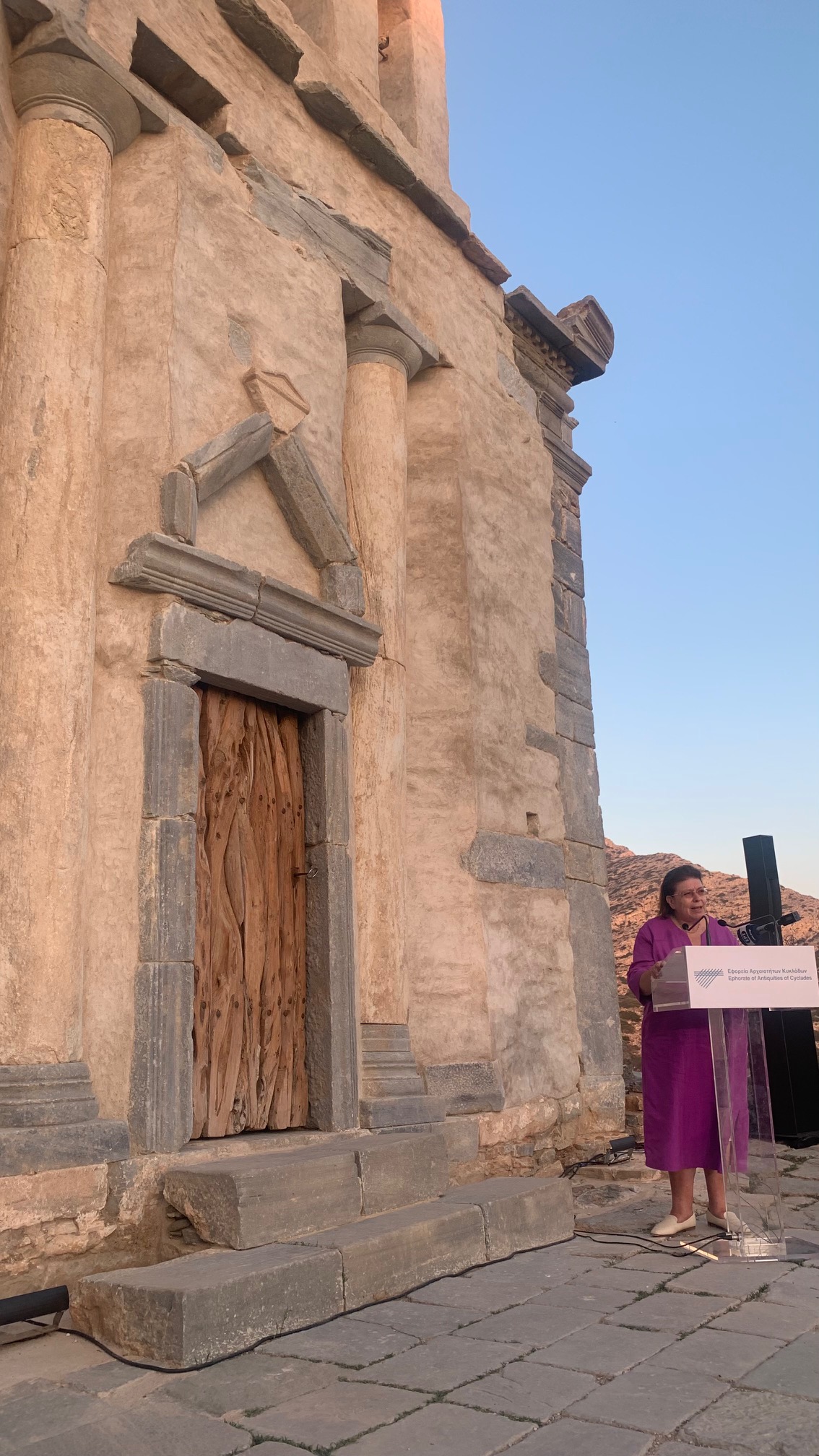 Ευχαριστώ την Europa Nostra και το κλιμάκιο της, το οποίο βρίσκεται εδώ μαζί μας με επικεφαλής τη Γενική Γραμματέα της, για την αναγνώριση του πόνου και του μόχθου των εργαζομένων στην Αρχαιολογική Υπηρεσία, επειδή αποδίδουν και αυτό το μνημείο με υποδειγματικό τρόπο στην πατρίδα μας και στην τοπική κοινωνία».