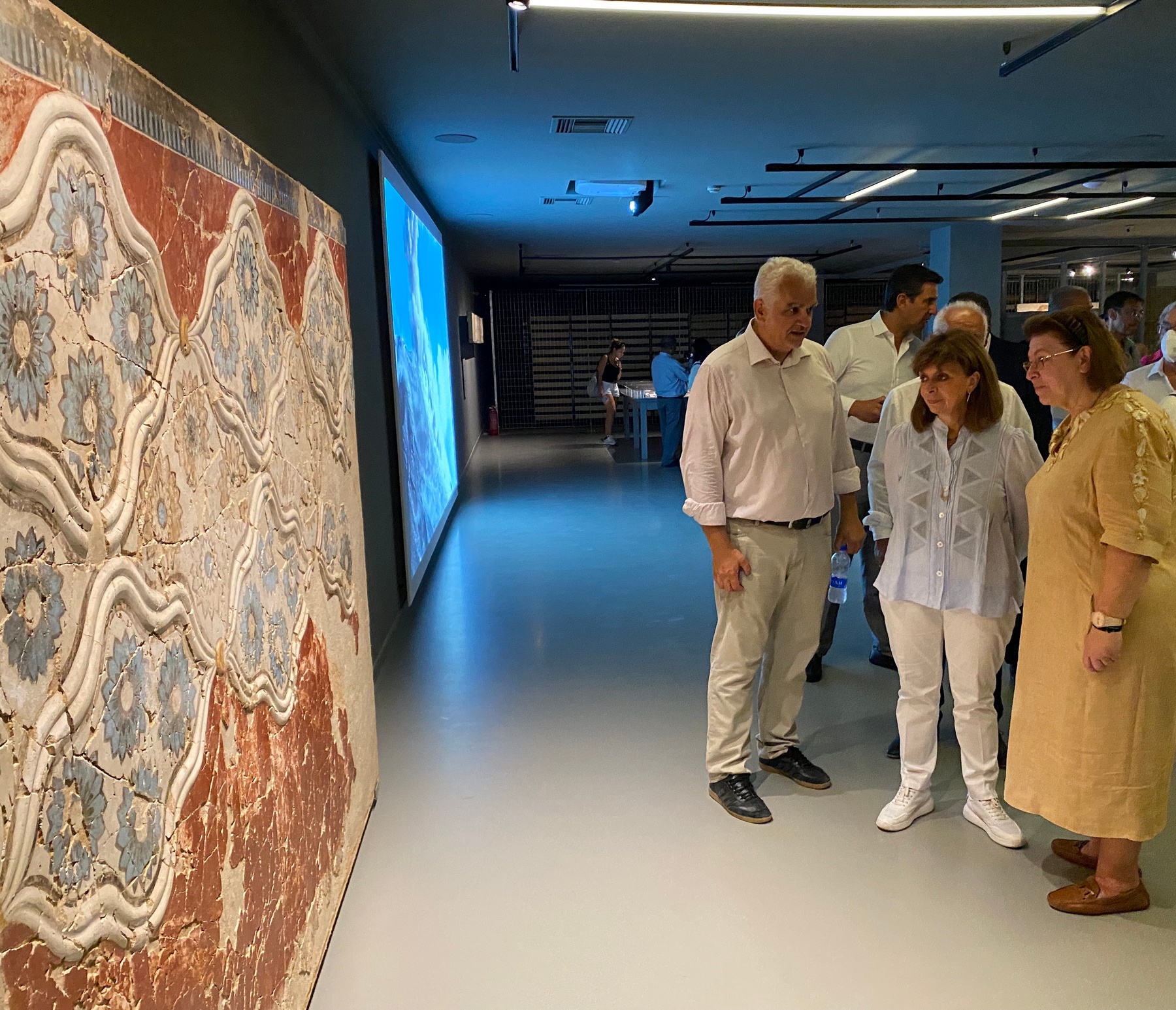 Τον Ιούλιο του 2020 ήρθαμε εδώ με τον Πρωθυπουργό Κυριάκο Μητσοτάκη, ο οποίος υποσχέθηκε ότι την επόμενη χρονιά θα ήταν εκτεθειμένες οι τοιχογραφίες στο Μουσείο Προϊστορικής Θήρας, οι οποίες ήταν και αυτές «φυλακισμένες» στις αποθήκες. Κάναμε αυτό που είπαμε. Πέρυσι αποδόθηκαν οι τοιχογραφίες του Ακρωτηρίου. Είπαμε τότε ότι το αρχαιολογικό μουσείο, το οποίο έπρεπε να ακολουθήσει σύγχρονες μουσειακές προδιαγραφές, θα ανακαινιστεί πλήρως. Βρήκαμε την αμέριστη συμπαράσταση του Δημάρχου και του Δήμου, ο οποίος μέσω Προγραμματικής Σύμβασης χρηματοδοτεί το έργο της αποκατάστασης του μουσείου. Σύμφωνα με τον προγραμματισμό που κάναμε το 2020, η Σαντορίνη το 2023 θα έχει και τα δύο της μουσεία αποκατεστημένα. Μαζί με το Ακρωτήρι και με μία σειρά άλλων παρεμβάσεων που γίνονται στο νησί από την Εφορεία Αρχαιοτήτων Κυκλάδων, η Σαντορίνη εγγράφεται πλέον ως ένας πολύ δυνατός πολιτιστικός προορισμός της Μεσογείου.