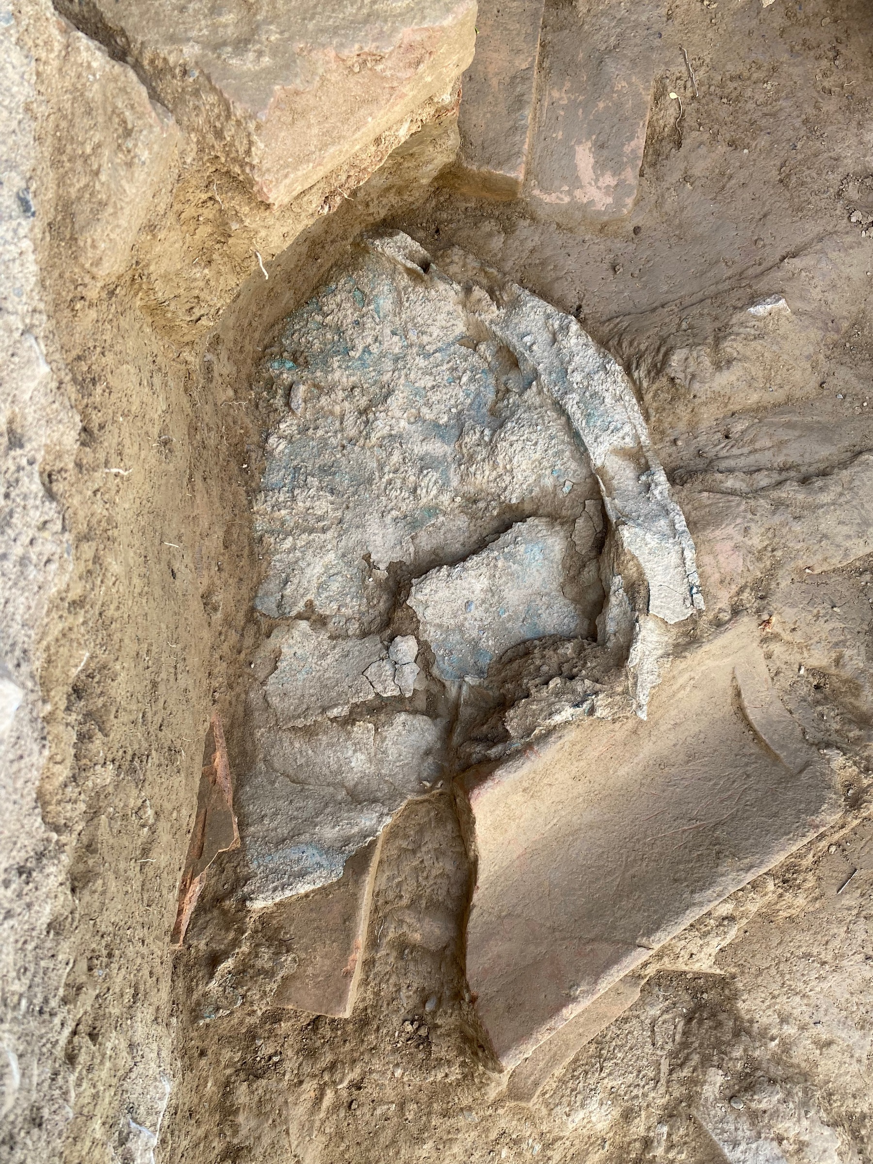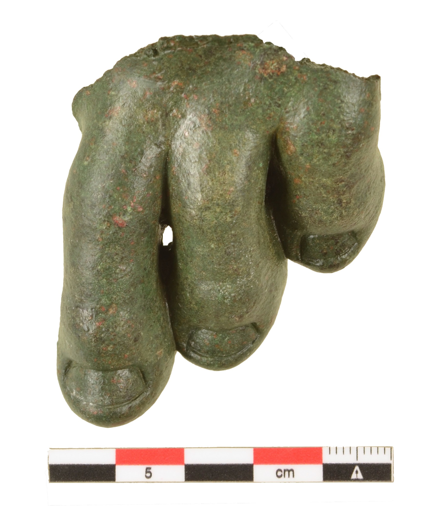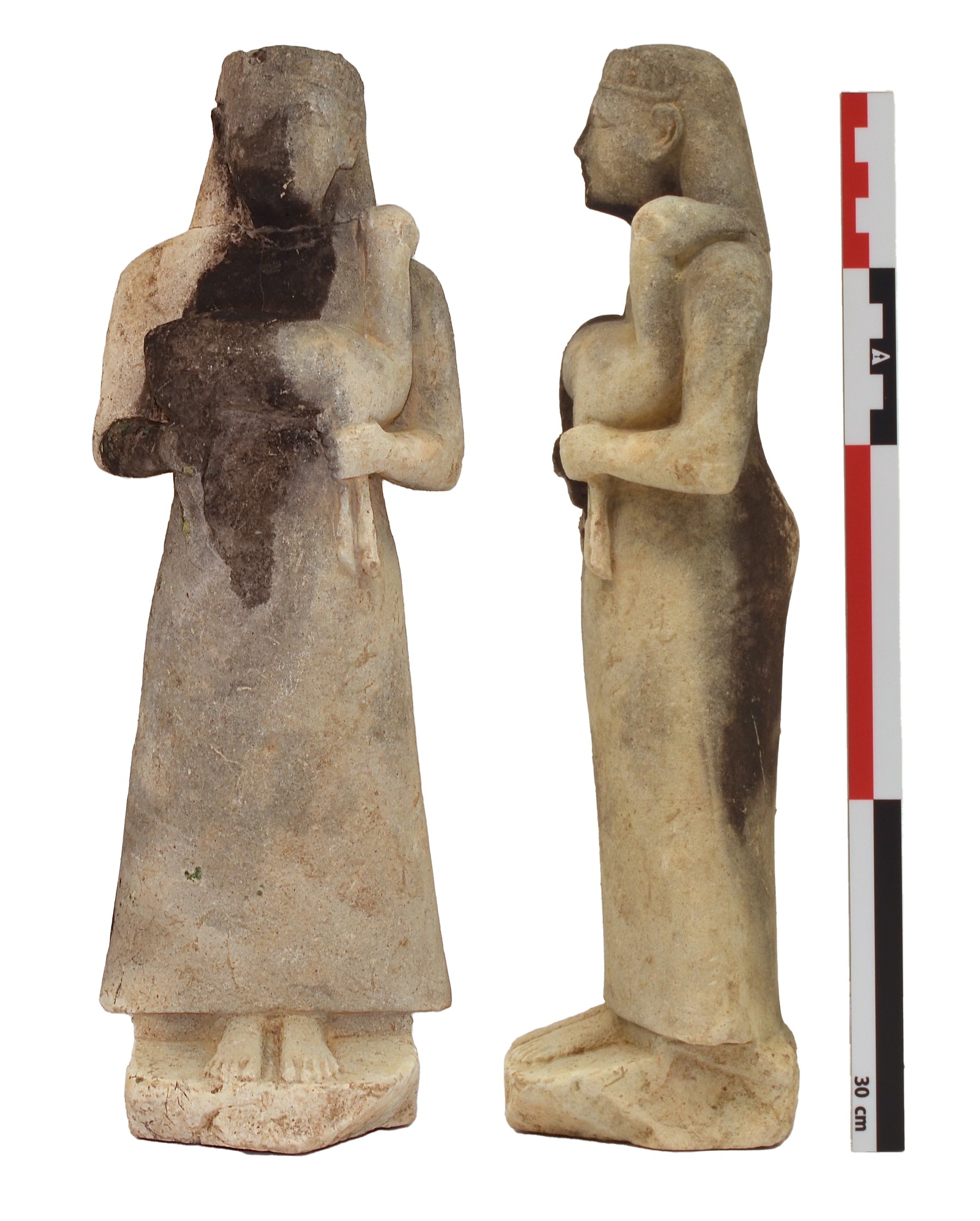 Σε υστερότερα των υστεροαρχαϊκών χρόνων στρώματα ανακαλύφθηκαν δύο θραύσματα χάλκινων αγαλμάτων: τα δάχτυλα ποδιού σε φυσικό μέγεθος και τμήμα ενδύματος.