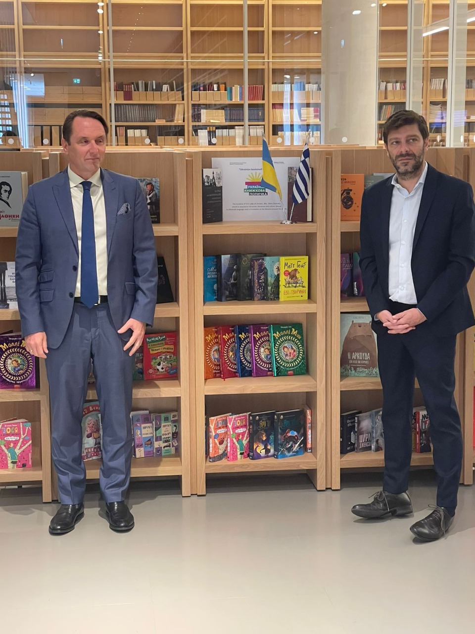 Την Πέμπτη 22 Σεπτεμβρίου 2022, παρουσία του Υφυπουργού Πολιτισμού και Αθλητισμού, αρμόδιου για θέματα σύγχρονου πολιτισμού, Νικόλα Γιατρομανωλάκη, του Πρέσβη της Ουκρανίας στην Αθήνα, Sergii Shutenko, του Προέδρου του Εφορευτικού Συμβουλίου της ΕΒΕ, Σταύρου Ζουμπουλάκη και του Γενικού Διευθυντή της ΕΒΕ, Φίλιππου Τσιμπόγλου, παρουσιάστηκε στην Εθνική Βιβλιοθήκη της Ελλάδος, μια μικρή συλλογή λογοτεχνικών βιβλίων ποικίλου περιεχομένου γραμμένων στην ουκρανική γλώσσα. Η συλλογή θα εκτίθεται για έναν μήνα στον χώρο των Ανοιχτών Αναγνωστηρίων του 2ου ορόφου του κεντρικού κτηρίου της ΕΒΕ στο Κέντρο Πολιτισμού Ίδρυμα Σταύρος Νιάρχος.