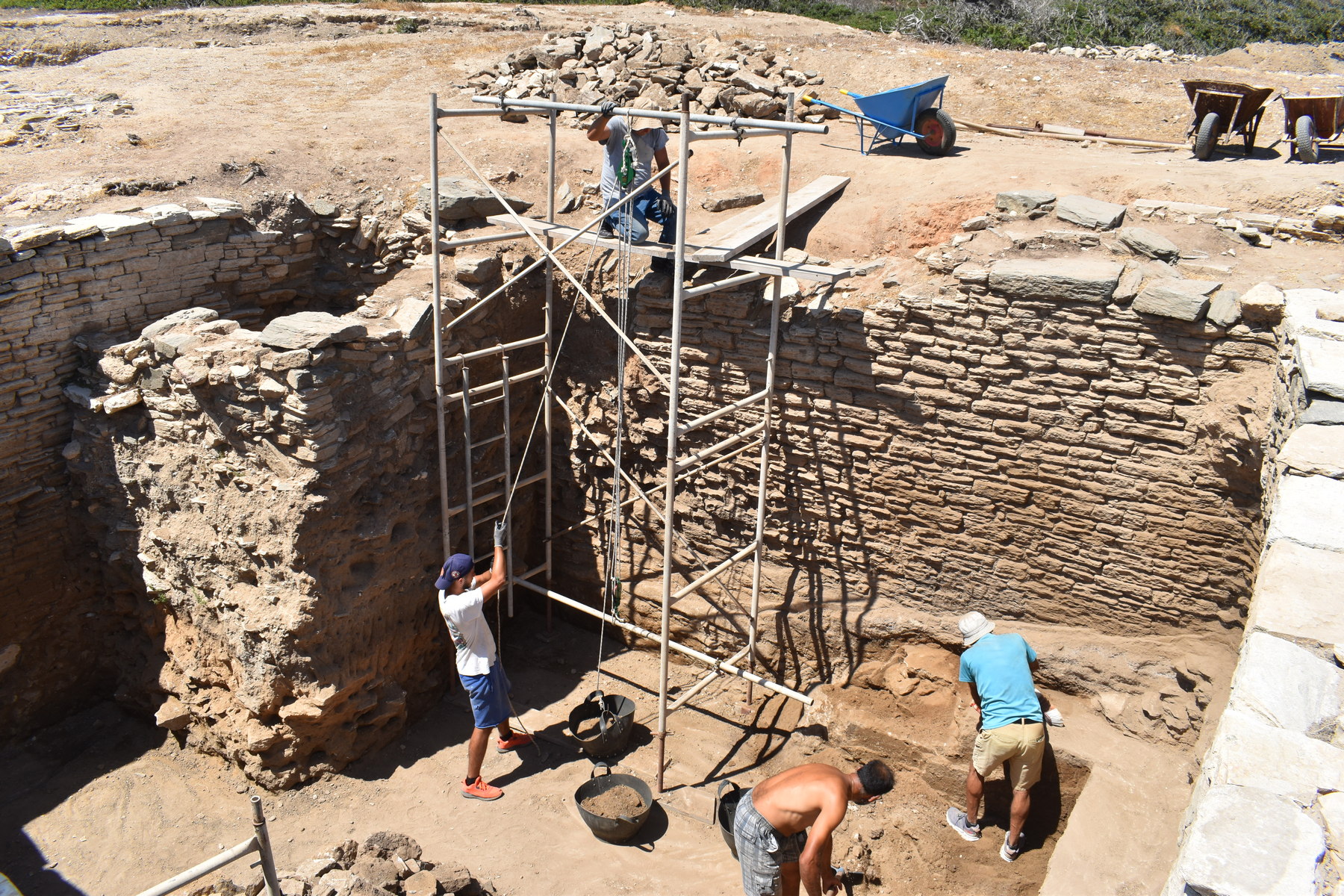 Η ανασκαφή διεξήχθη υπό τη διεύθυνση του Γ. Κουράγιου (Εφορεία Αρχαιοτήτων Κυκλάδων) και τη συνεργασία των αρχαιολόγων Ίλιας Νταϊφά και Αλεξάνδρας Αλεξανδρίδου (Επικ. καθηγ. Πανεπιστημίου Ιωαννίνων). Συμμετείχαν επίσης οι Χριστίνα Κωνσταντακοπούλου (ΕΙΕ, Birkbeck College), Caspar Meyer (Bard Graduate Center), Erica Angliker (ICS London) και Luigi Lafasciano, μεταπτυχιακοί φοιτητές και απόφοιτοι από το Πανεπιστήμιο Ιωαννίνων (Λουίζα Πανοπούλου, Ιγνάτιος Ασσάτωφ, Μάτα Σαμιώτη, Αναστασία Μαλλικοπουλου, Δέσποινα Καπετανίδου, Χριστίνα Γιαμούζη) και το Bard Graduate Center (New York), καθώς και προπτυχιακοί φοιτητές από το College Year in Athens, το Birkbeck College του Λονδίνου και το Πανεπιστήμιο του Sao Paolo (Βραζιλία).