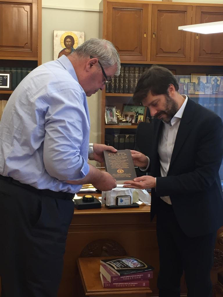 Στο Δημαρχείο της πόλης πραγματοποιήθηκε στις 25 Οκτωβρίου συνάντηση του Υφυπουργού με τον Δήμαρχο Ιωαννίνων, Μωυσή Ελισάφ, με τη συμμετοχή της Αντιδημάρχου Κοινωνικής Προστασίας & Μεταναστευτικής Πολιτικής και Προέδρου του Δημοτικού Περιφερειακού Θεάτρου Ιωαννίνων (ΔΗΠΕΘΙ), Χριστίνας Κωτσαντή, του Καλλιτεχνικού Διευθυντή του ΔΗΠΕΘΙ, Χάρη Πεχλιβανίδη. Η συζήτηση επικεντρώθηκε στα θέματα των δημοτικών πολιτιστικών φορέων, όπως το ΔΗΠΕΘΙ και το Πνευματικό Κέντρο, συζήτηση που συνεχίστηκε και κατά την επίσκεψη του Υφυπουργού και του Δημάρχου στη Δημοτική Πινακοθήκη.