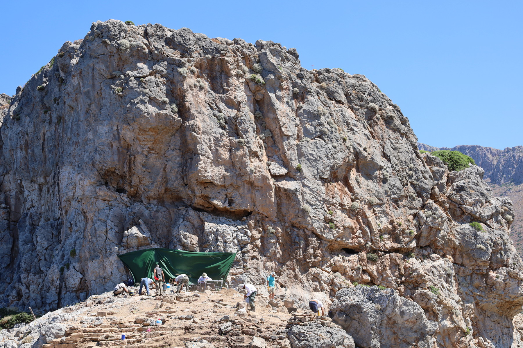 Η ανασκαφή έγινε με την εποπτεία του Υπουργείου Πολιτισμού και Αθλητισμού και υπό τη διεύθυνση της Δρ. Ελπίδας Χατζηδάκη, με την υποστήριξη της Διευθύντριας της Εφορείας Χανίων Δρ. Ε. Παπαδοπούλου, ενώ συμμετείχε ο αρχαιολόγος της Εφορείας Δρ. Μιχάλης Μιλιδάκης και ο αρχιτεχνίτης Κ. Μουντάκης. Ελαβαν μέρος επίσης οι αρχαιολόγοι Δρ. Μάικλ Μπέντον, Κ. Μπορμπουδάκη, Π. Ζερβουδάκης, και Γ. Αποστολάκης και οι αρχιτέκτονες Θ. Νακάσης και Ν. Μιχαηλίδης. Στη συντήρηση εργάστηκαν οι Ε. Κατσουλάκη, και Κ. Νικολακάκη. Ως εργατοτεχνίτες ήταν οι Σ. Χισένι, Η. Κουνελάκης, Μ. Μαρκάκης, Ε. Σελίμι, Χ. Μούσα, Γ. Χαραλαμπάκης και Ε. Παρτάλι. Το έργο πραγματοποιήθηκε με τις ευγενικές χορηγίες του ιδρύματος ΑΙΓΕΑΣ ΑΜΚΕ (Θανάσης και Μαρίνα Μαρτίνου), του Υπουργείου Εμπορικής Ναυτιλίας (Γενική Γραμματεία Αιγαίου) με προσωπικό ενδιαφέρον του Υπουργού κ. Ι. Πλακιωτάκη και του Συλλόγου Φίλων Αρχαίας Φαλάσαρνας.
