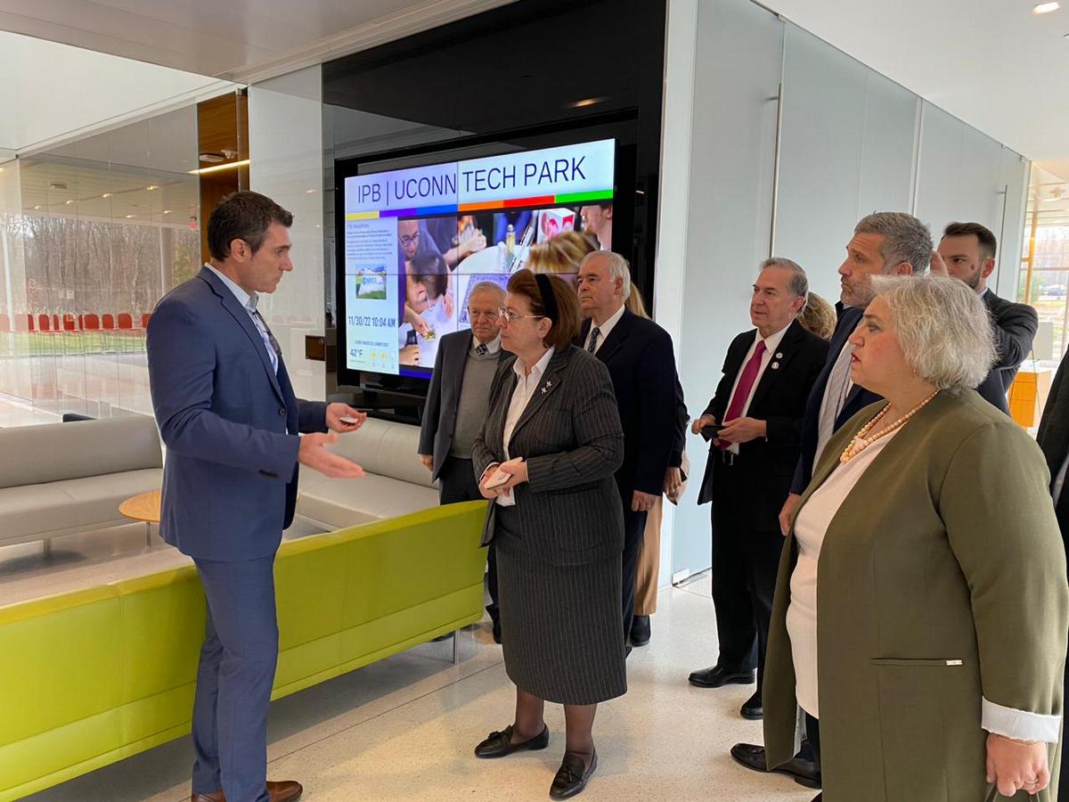 Στο Κέντρο Καινοτομίας του UConn, τη Λίνα Μενδώνη υποδέχθηκε ο Ελληνας διευθυντής του Πανεπιστημιακού Τεχνολογικού Πάρκου καθηγητής Μάνος Αναγνώστου, ο οποίος ξενάγησε την Υπουργό στις εγκαταστάσεις του Κέντρου.