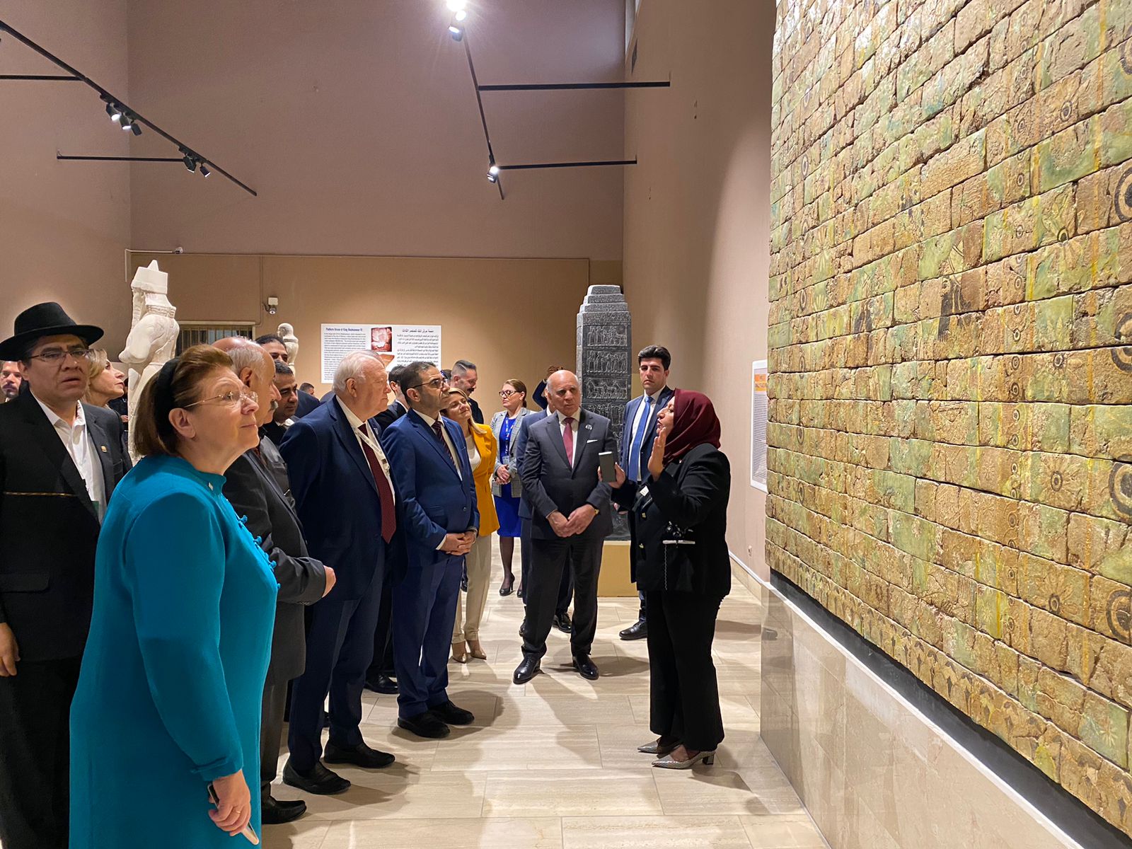 Η διήμερη παραμονή της Λίνα Μενδώνη στο Ιράκ ολοκληρώθηκε με την επίσκεψή της, μαζί και με τις άλλες αντιπροσωπείες που συμμετείχαν στο Φόρουμ, στον αρχαιολογικό χώρο της Βαβυλώνας.