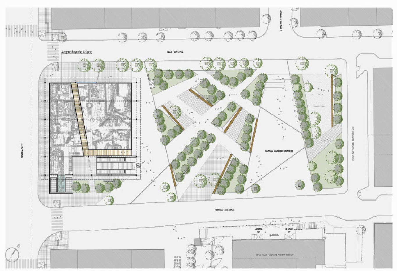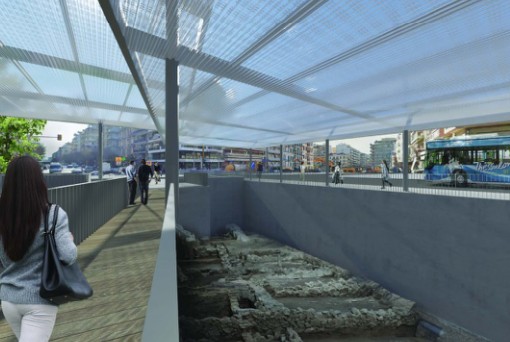 Η Βόρεια είσοδος του Σταθμού Αγίας Σοφίας του Μητροπολιτικού Σιδηροδρόμου Θεσσαλονίκης, συνολικής έκτασης 820 τ.μ., χωροθετείται νότια της πλατείας Μακεδονομάχων και βόρεια του Σταθμού, μεταξύ των οδών Αγίας Σοφίας και Πλάτωνος. Η ανασκαφική διερεύνηση ξεκίνησε τον Απρίλιο του 2016, συνεχίστηκε το 2019 και ολοκληρώθηκε το 2022, φέρνοντας στο φως τμήμα του αστικού πολεοδομικού ιστού της πόλης της Θεσσαλονίκης, το οποίο διαρθρώνεται βόρεια του decumanus maximus, της βυζαντινής λεωφόρου (σημερινή Εγνατία οδός), σε επαλληλία οικοδομικών φάσεων, από την ύστερη αρχαιότητα και τους πρωτοβυζαντινούς χρόνους έως τη μεταβυζαντινή και νεώτερη εποχή. Αποκαλύφθηκε τμήμα μεγάλης σιγμοειδούς μαρμαρόστρωτης πλατείας, του 6ου αι., στην οποία οδηγούσε μνημειώδης κλίμακα από το επίπεδο της οδού. Στους βυζαντινούς χρόνους, την περιοχή της πλατείας κατέλαβαν καταστήματα και εργαστήρια στα οποία παράγονταν κεραμικά, υάλινα και μετάλλινα κοσμήματα, ενώ στους πρώιμους μεταβυζαντινούς χρόνους προστέθηκε και ένα ναϋδριο.