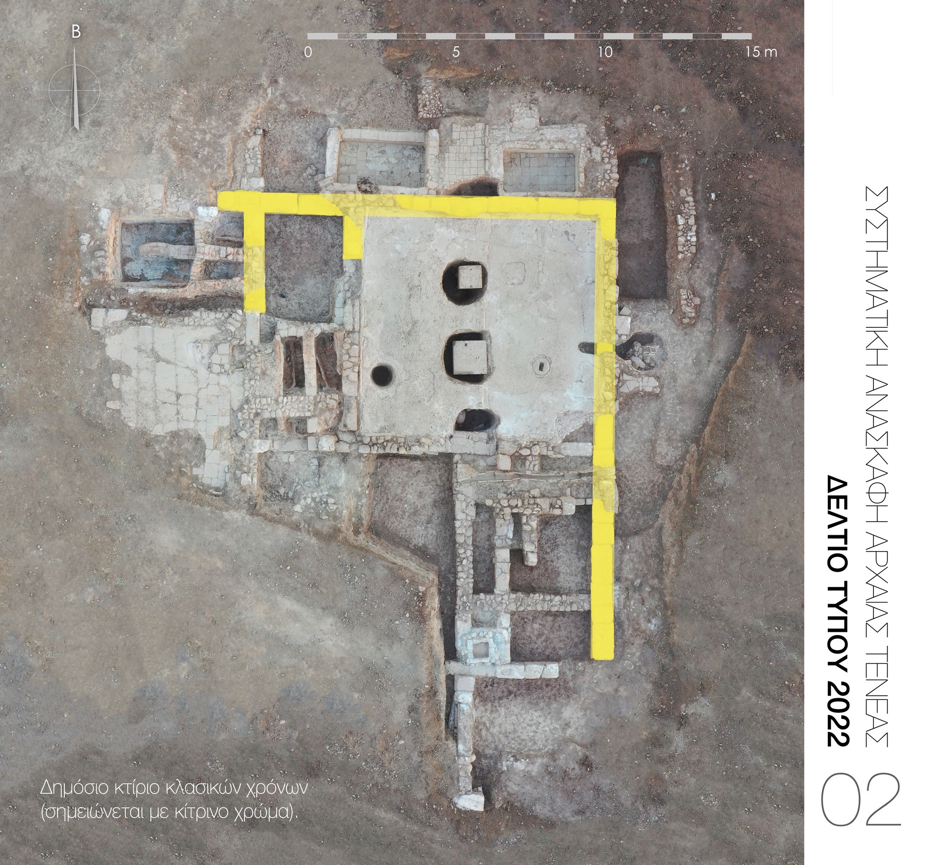 Η ανασκαφή ανέδειξε δημόσιο κτίριο, που ανασκάφηκε σε έκταση 145 τ.μ. (Εικ. 2), με σημαντικά ευρήματα, μεταξύ άλλων και μεγάλη διασπορά αναθηματικών ειδωλίων (Εικ. 10), που συνδέονται πιθανότατα με όμορο λατρευτικό χώρο. Ταυτόχρονα ανασκάφηκε ισχυρό αναλημματικό τείχος της πρώιμης κλασικής περιόδου στο όριο της πόλης (Εικ. 3).