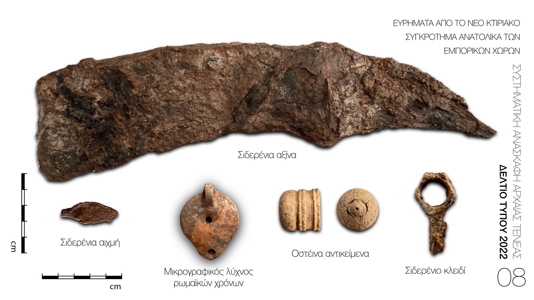 Ανατολικά των ανωτέρω χώρων εντοπίστηκε νέο κτίριο, του οποίου ανασκάφηκαν φέτος τέσσερις χώροι έκτασης 156τ.μ. (Εικ. 6). Πρόκειται για δωμάτια με επιμελημένες και ισχυρές τοιχοποιίες, ορισμένες εκ των οποίων φέρουν επικονίαση. Στο εσωτερικό ενός δωματίου βρέθηκε θησαυρός δεκαοχτώ ασημοχάλκινων νομισμάτων του 3ου αι. μ.Χ., κοπής Βαλεριανού, Γαλιηνού και Σαλονίνας (Εικ. 9). Επιπλέον, βρέθηκαν άλλα δεκατρία νομίσματα του 4ου και 5ου αι. μ.Χ. σιδερένια αξίνα, σιδερένιο κλειδί, σιδερένια αιχμή βέλους, σιδερένια γραφίδα και χρηστική κεραμική ρωμαϊκών χρόνων (Εικ 8).