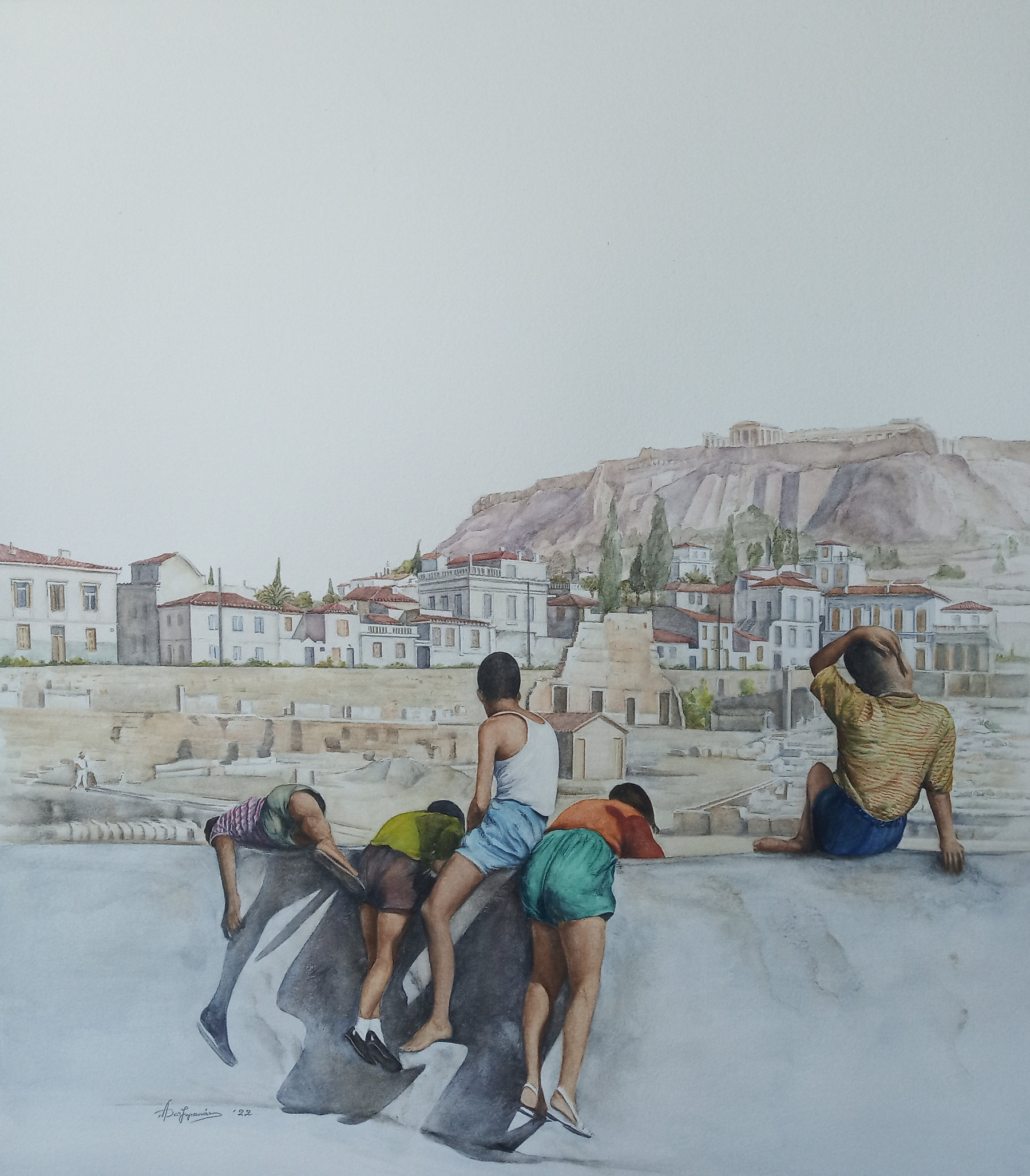 Η έκθεση, με έργα της εικαστικού Άρτεμης Χατζηγιαννάκη, σε επιμέλεια του δημοσιογράφου και συγγραφέα Νίκου Βατόπουλου, αναδεικνύει την ανθρωπογεωγραφία της παλαιάς χαμένης συνοικίας των Αθηνών, η οποία βρισκόταν στον χώρο που καταλαμβάνει σήμερα ο αρχαιολογικός χώρος της Αρχαίας Αγοράς. Ολόκληρη η συνοικία Βρυσάκι, απαλλοτριώθηκε και κατεδαφίσθηκε για να αποκαλυφθεί η Αρχαία Αγορά από τη ανασκαφή που διεξήγαγε η Αμερικανική Σχολή Κλασσικών Σπουδών. Αντικείμενα από τις συλλογές του Μουσείου συνδιαλέγονται με τις υδατογραφίες της εικαστικού Άρτεμης Χατζηγιαννάκη, με σκοπό να ζωντανέψουν πτυχές από την καθημερινότητα στο Βρυσάκι και την ευρύτερη περιοχή του, στα όρια της οποίας βρίσκονται το Λουτρό των Αέρηδων και το Μουσείο Νεότερου Ελληνικού Πολιτισμού.