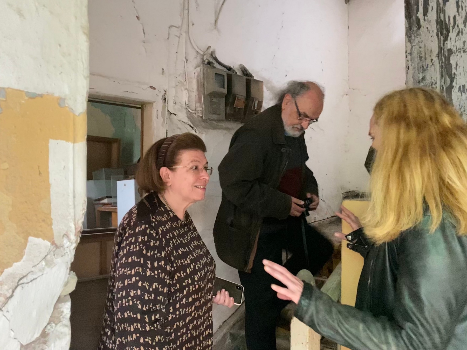 Η Λίνα Μενδώνη, η Καλλιτεχνική Διευθύντρια του Θεάτρου Τέχνης Καρόλου Κουν Μαριάννα Κάλμπαρη, ο νόμιμος εκπρόσωπος του Θεάτρου Τέχνης Κωστής Καπελώνης και η εκπρόσωπος του Διοικητικού Συμβουλίου Καλή Κυπαρίσση-Παγουλάτου, πραγματοποίησαν αυτοψία στο κτήριο της οδού Διοσκούρων 7, όπου δημιουργείται το μουσείο.