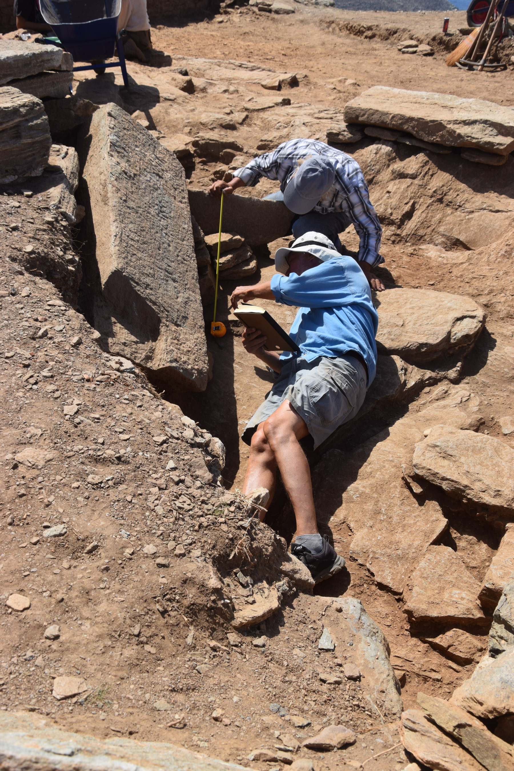 Εσωτερικά της θύρας του Κτιρίου 3 βρέθηκε, μετακινημένο από την αρχική θέση του, ενεπίγραφο μνημειώδες βάθρο διαστ. 1,43 Χ 0,47 Χ 0,21 (πάχ.), που σώζει την επιγραφή των ύστερων ελληνιστικών χρόνων «Νηρηίς δαμιουργός», το οποίο πιθανώς αναφέρεται σε κάποια αξιωματούχο του ιερού. Η χρήση της δωρικής διαλέκτου επιβεβαιώνει για μια ακόμη φορά την παράλληλη χρήση της με την Ιωνική στην Κύθνο.