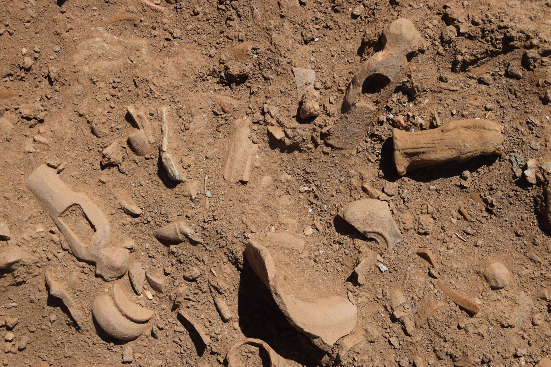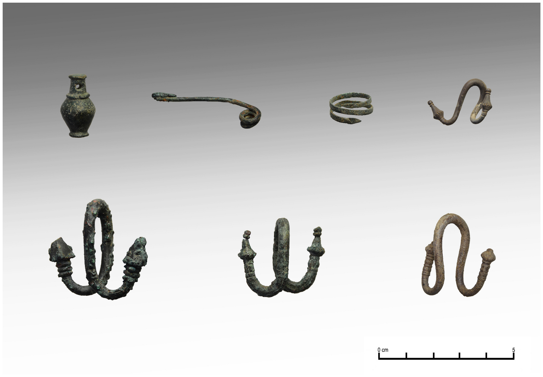 Αρκετά αγγεία πόσεως, κυρίως ρωμαϊκών χρόνων, προερχόμενα τόσο από το εσωτερικό του ναού (Κτιρίου 4), όσο και από τις διάφορες επιχώσεις εντός του Κτηρίου 3 και από τον «αποθέτη», ταυτίζονται ως τελετουργικά καθώς έχουν επιγραφές που χαράχθηκαν πριν την όπτηση και αποτελούν αφιερώματα γυναικών, ενώ επιβεβαιώνουν ότι το ιερό ήταν αφιερωμένο στη λατρεία τόσο της Δήμητρας όσο και της Κόρης. Προσωρινά, θα μπορούσαμε μάλιστα να υποθέσουμε ότι το Κτήριο 4 ήταν ο ναός της Δήμητρας, ενώ το παρακείμενο μικρότερο Κτήριο 5 αυτός της Κόρης.