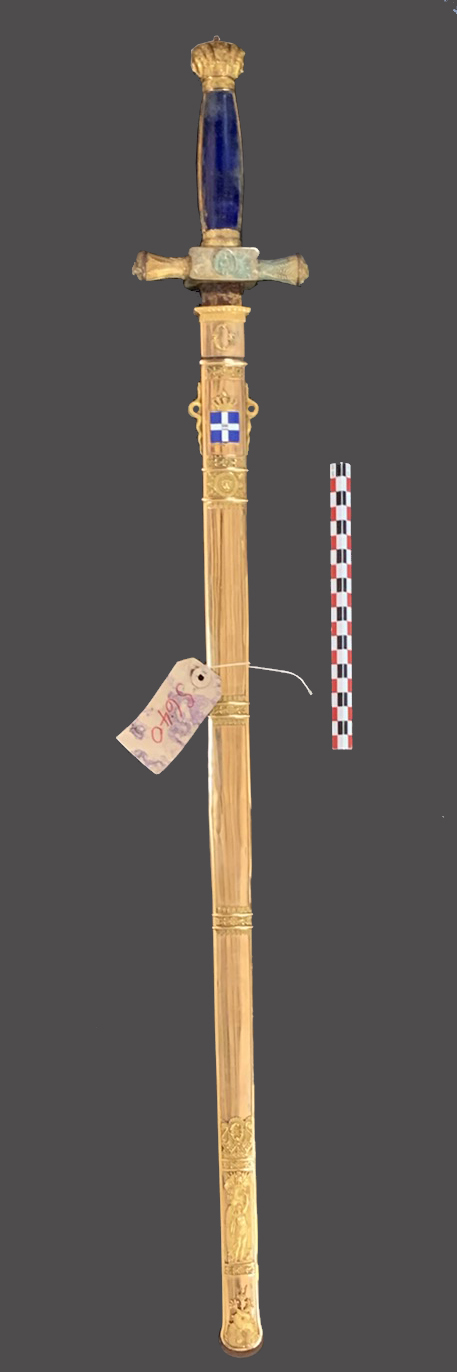 Ο Όθων, πρίγκιπας της Βαυαρίας, του οίκου των Βίττελσμπαχ, βασίλευσε στην Ελλάδα με τον τίτλο Βασιλεύς της Ελλάδος, από το 1832 έως το 1862. Το στέμμα και το σκήπτρο, κατασκευάστηκαν από το περίφημο παρισινό οίκο χρυσοχοϊας Fossin et Fils, ενώ για το ξίφος συνεργάστηκαν οι Fossin με τον ξιφοποιό Jules (;) Manceaux, του ομώνυμου οίκου οπλοποιών.
