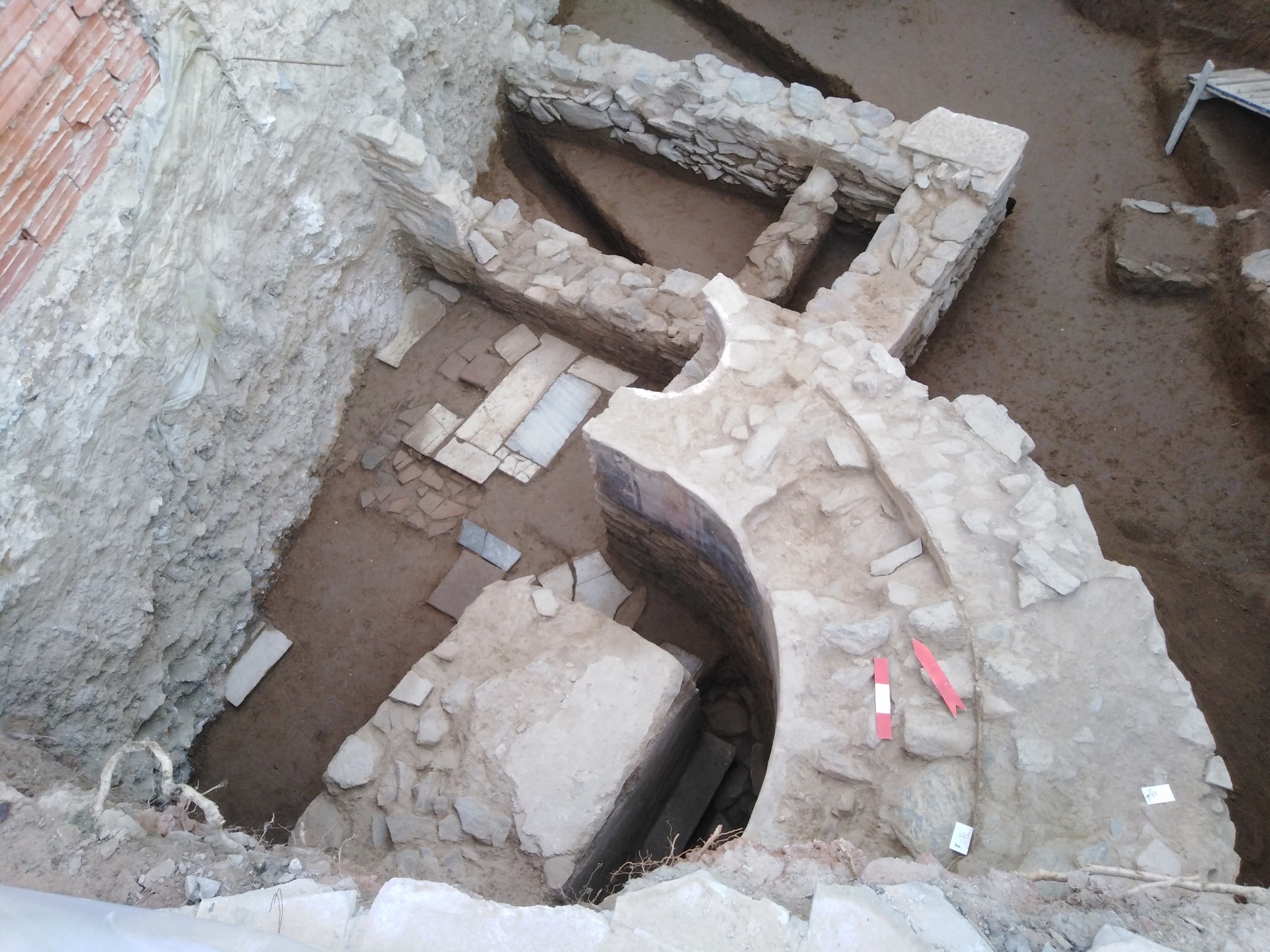 Συγκεκριμένα, αποκαλύφθηκε το ήμισυ περίπου πολύπλευρης, υπολογιζόμενης ως πεντάπλευρης, κόγχης του ιερού Βήματος με δύο κατασκευαστικές φάσεις. Ο τοίχος της κόγχης, δομείται με λίθους και πλίνθους, πολλές από τις οποίες είναι ενσφράγιστες με σταυρούς, έχει αμελές πλινθοπερίκλειστο σύστημα δόμησης και συνδετικό υλικό το χώμα. Σε πολύ μικρή απόσταση από τον αγιογραφημένο τοίχο της κόγχης, αποκαλύφθηκε η ίδια η Αγία Τράπεζα. Ο βωμός είναι χτιστός, με μορφή συμπαγούς κύβου.