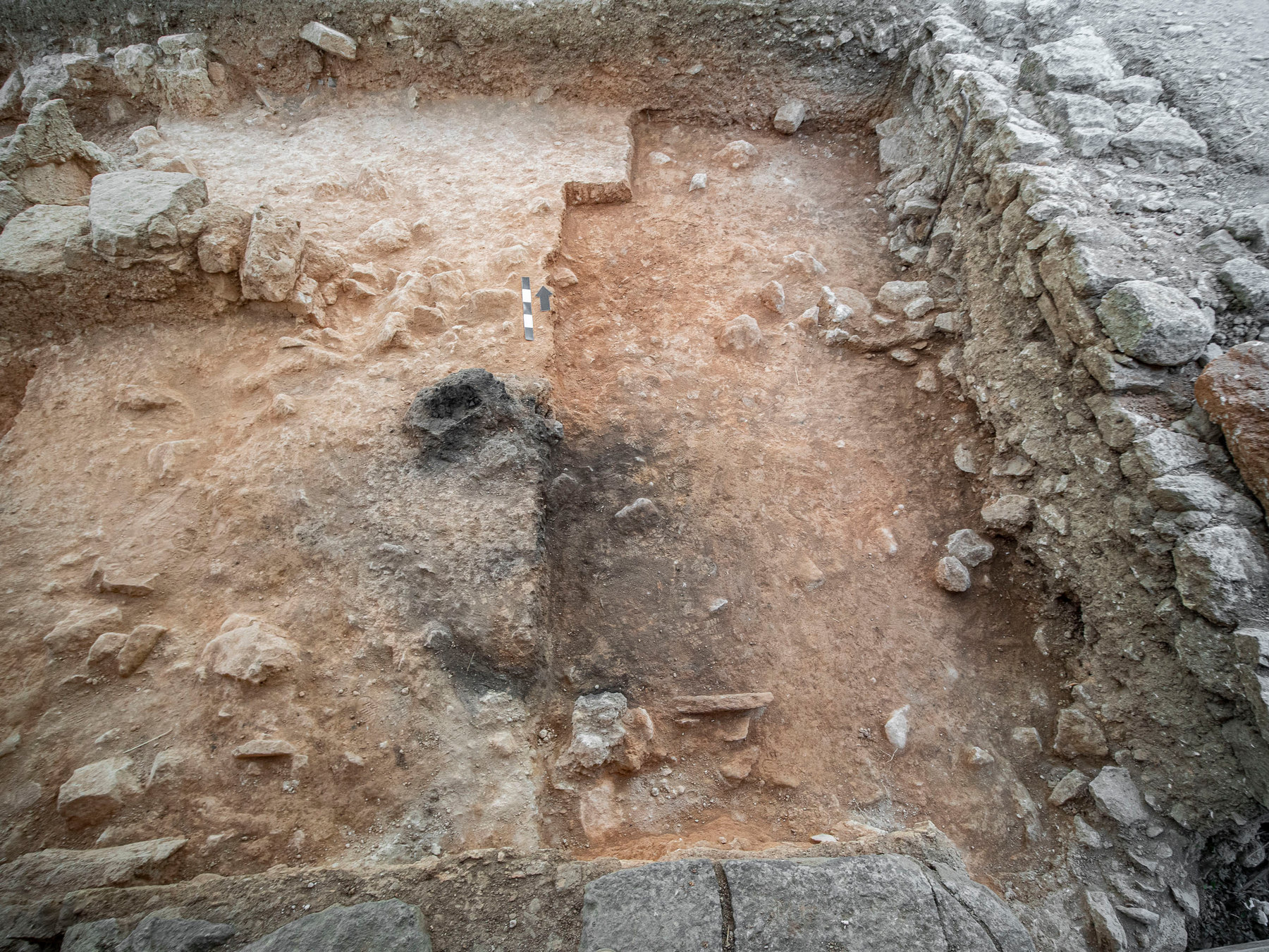 Από την ανασκαφή του 2023 φάνηκε, ότι η φωτιά, προήλθε από ένα χώρο ανωτέρου ορόφου. Παχύ στρώμα στάχτης και καμένου ξύλου βρέθηκε κυρίως στο ΒΑ τμήμα και έφθασε μέχρι το δάπεδο. Από το σημείο αυτό ίσως εξαπλώθηκε η φωτιά.