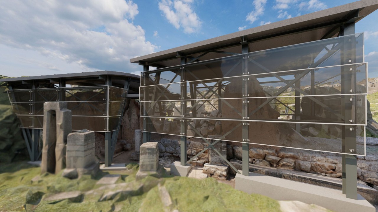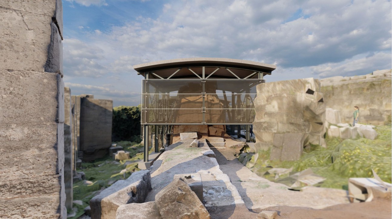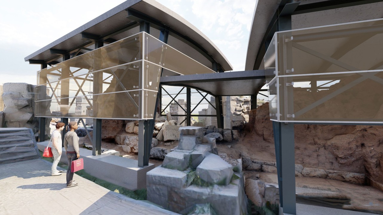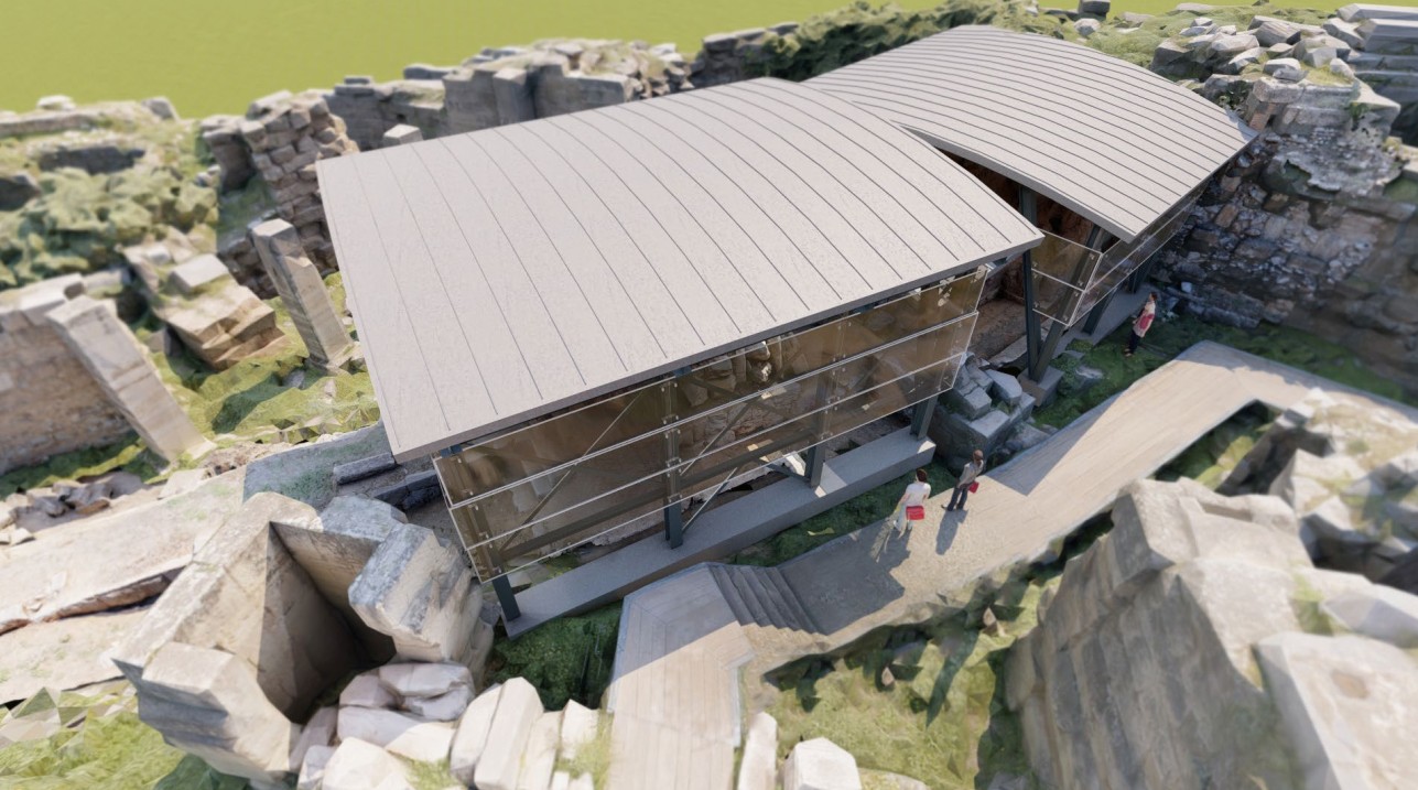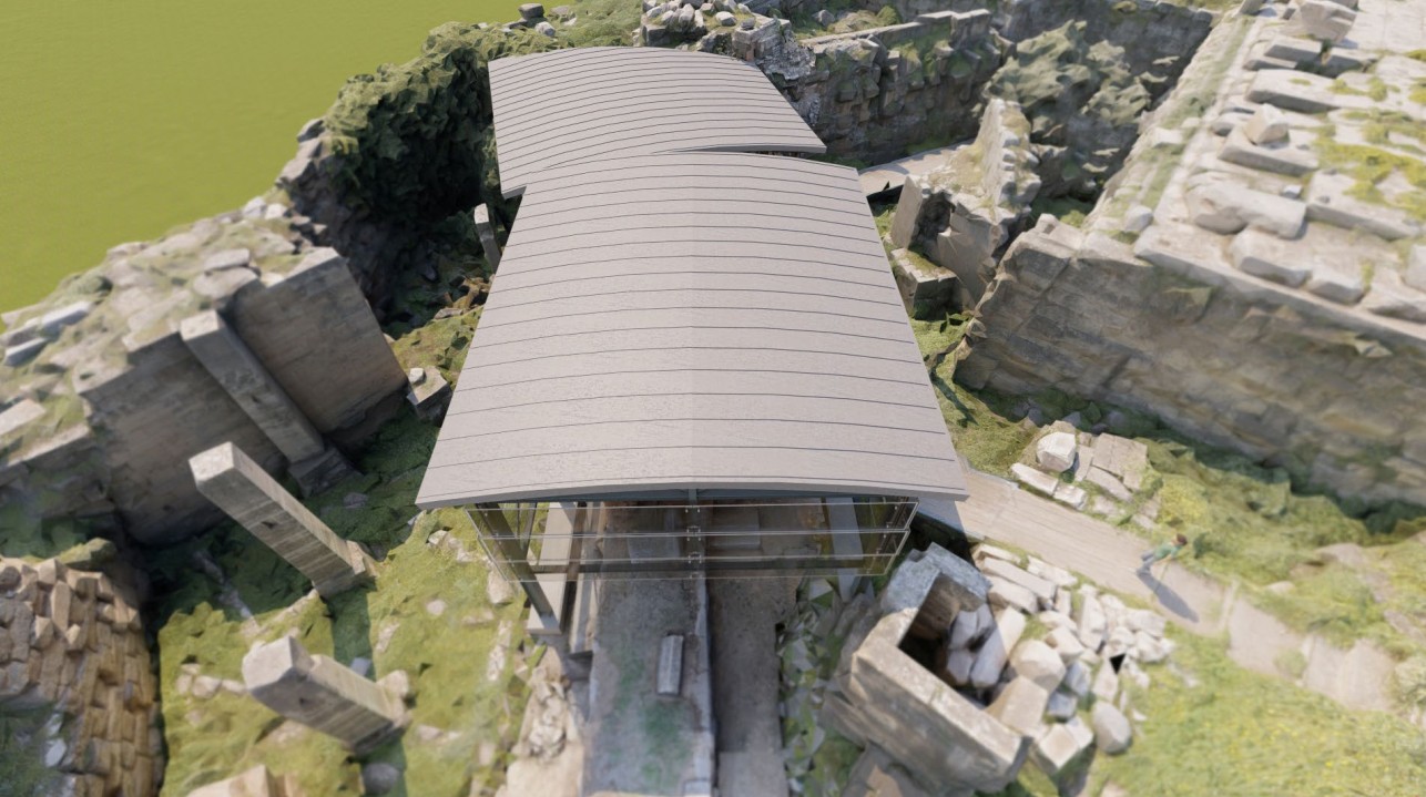 Στόχος της μελέτης είναι η προστασία του μνημείου από τη διαβρωτική επίδραση του ανέμου, της βροχής και των ακραίων θερμοκρασιών. Ο σχεδιασμός έχει ως γνώμονα την ομαλή ένταξη των στεγάστρων στο περιβάλλον του αρχαιολογικού χώρου, αλλά και την ανάδειξη της σπουδαιότητα του μνημείου. Τα προσδοκώμενα οφέλη από τη συνολική μόνιμη στέγαση του μνημείου είναι, επίσης, η διαμόρφωση ηπιότερων συνθηκών μικροκλίματος, φωτισμού και αερισμού, αλλά και ο περιορισμός του εύρους και της ταχύτητας μεταβολής των θερμοκρασιών. Προκειμένου να μη διαταραχθεί το άμεσο περιβάλλον, ο σχεδιασμός της έκτασης των στεγάστρων προστασίας περιορίζονται αυστηρά στα όρια του μνημείου με σκοπό αφενός την εναρμόνισή τους με τους άξονες της κάτοψης του υποκείμενου μνημείου αφετέρου την ενίσχυση της έννοιας της συνέχειας των ευρημάτων, τα οποία αν και μπορεί να είναι διακοπτόμενα ή και σε απόσταση μεταξύ τους, αποτελούν κομμάτια του ίδιου συνόλου. Για την πλαϊνή κάλυψη του μνημείου προτείνεται η χρήση υαλοπινάκων σε σύστημα σημειακής στήριξης. Επιπλέον, λαμβάνεται υπόψη το ύψος του «Κιμώνειου τείχους», το οποίο συνορεύει προς τα νότια, για να μην επηρεαστεί αρνητικά από την επέμβαση.