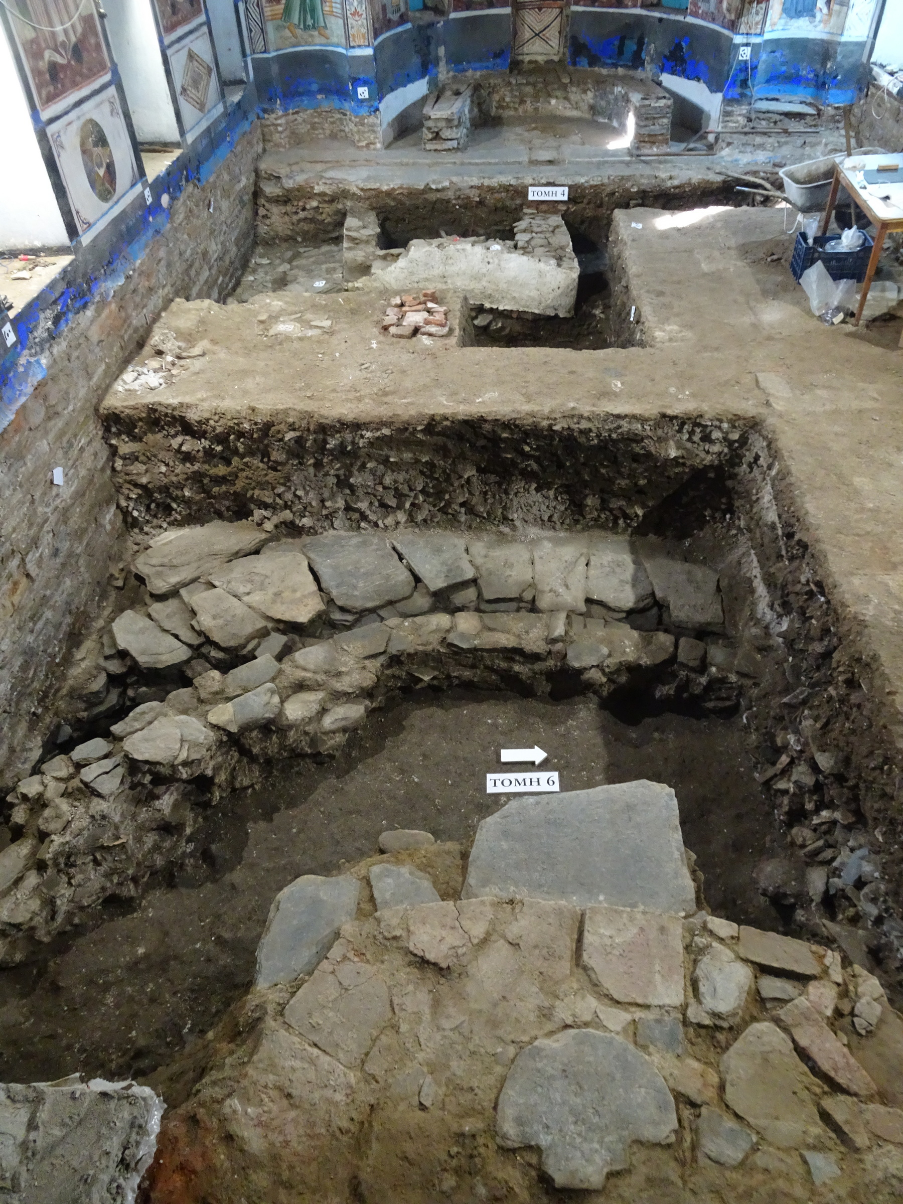 Οι εργασίες έφεραν στο φως μεγάλο μέρος της αρχικής βυζαντινής τράπεζας του 10ου αιώνα (Εικ. 2), η οποία προκύπτει ότι ήταν επίσης σταυρόσχημη, όπως και η σημερινή. Εντοπίστηκε επίσης η μεγέθυνση της τράπεζας του 12ου αιώνα προς τα δυτικά (Εικ. 3) και τα κατά καιρούς επάλληλα δάπεδα και βάσεις των τραπεζιών, στοιχεία που μαρτυρούν τις ανακαινιστικές εργασίες που γίνονταν για ένα διάστημα 700 περίπου χρόνων. Τις επάλληλες φάσεις τεκμηριώνουν ένας ικανός αριθμός οστράκων από εφυαλωμένα αγγεία, τα οποία καλύπτουν ένα ευρύ χρονικό διάστημα από τα τέλη 10ου αι. έως και τα όψιμα μεταβυζαντινά χρόνια.