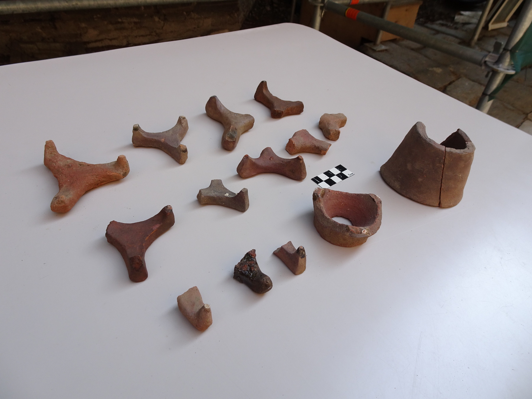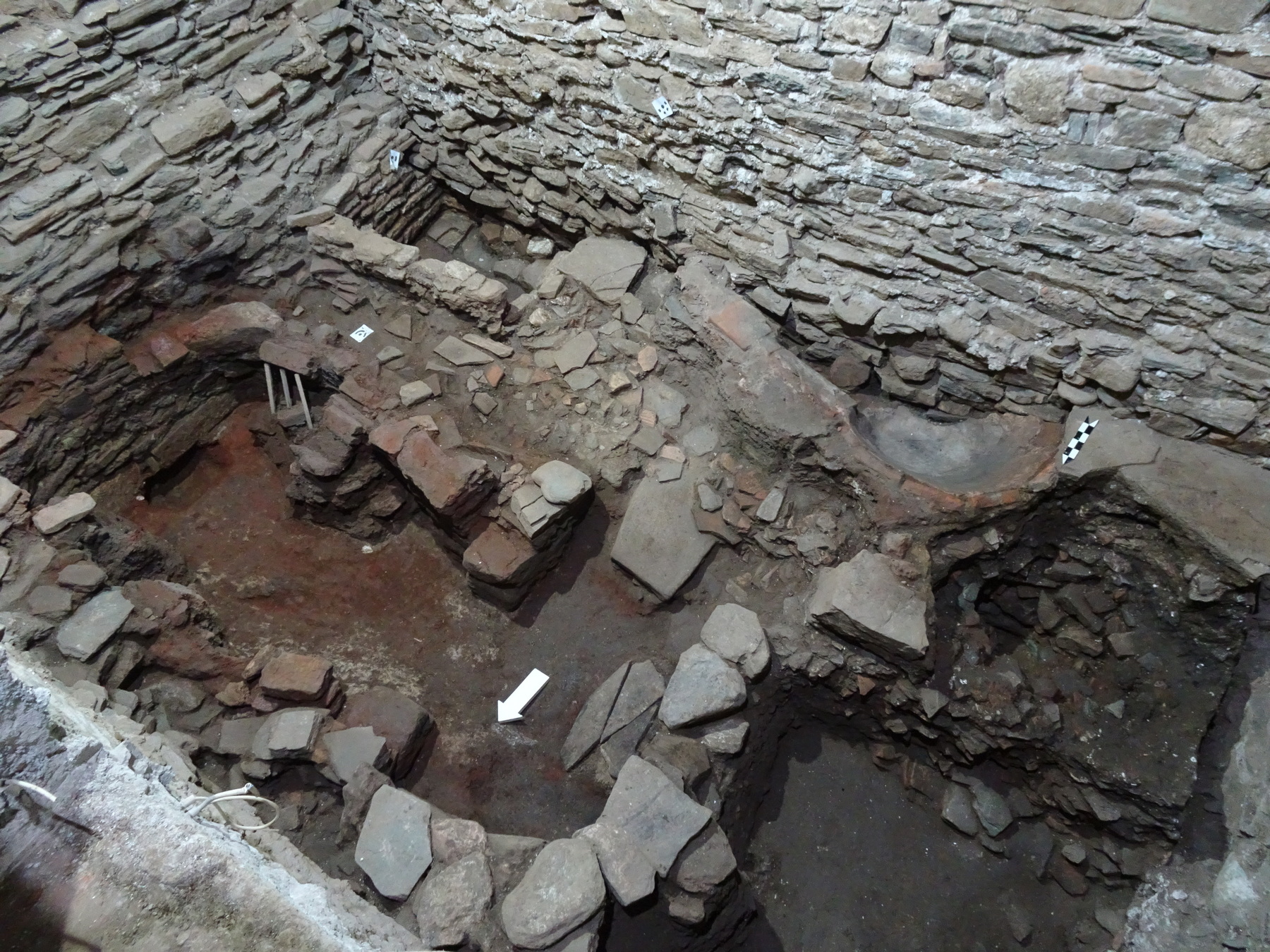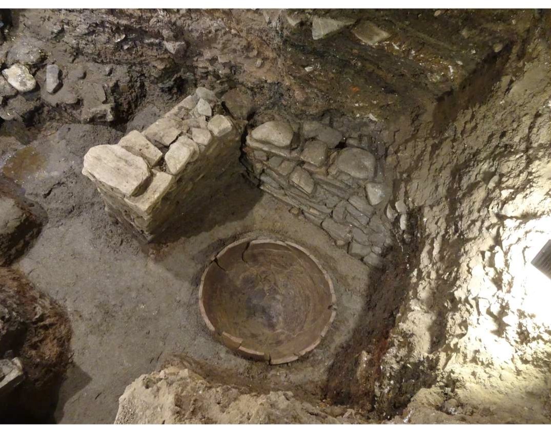 Η ανασκαφική τομή στο βορειοανατολικό βοηθητικό διαμέρισμα της υφιστάμενης τράπεζας αποκάλυψε έναν βυζαντινό εργαστηριακό χώρο με αποσπασματικά σωζόμενο κεραμικό κλίβανο, δεξαμενή και αποθέτη (Εικ. 5 και Εικ. 6). Από τα χαρακτηριστικά της λειτουργίας του κλιβάνου μπορούμε να υποθέσουμε ότι αυτός προοριζόταν για την καμίνευση κυρίως μικρών επιτραπέζιων αγγείων (πινάκια, κούπες). Η παρουσία του κλιβάνου δηλώνει την επί τόπου παραγωγή κεραμικής για την κάλυψη των καθημερινών αναγκών της Μονής.