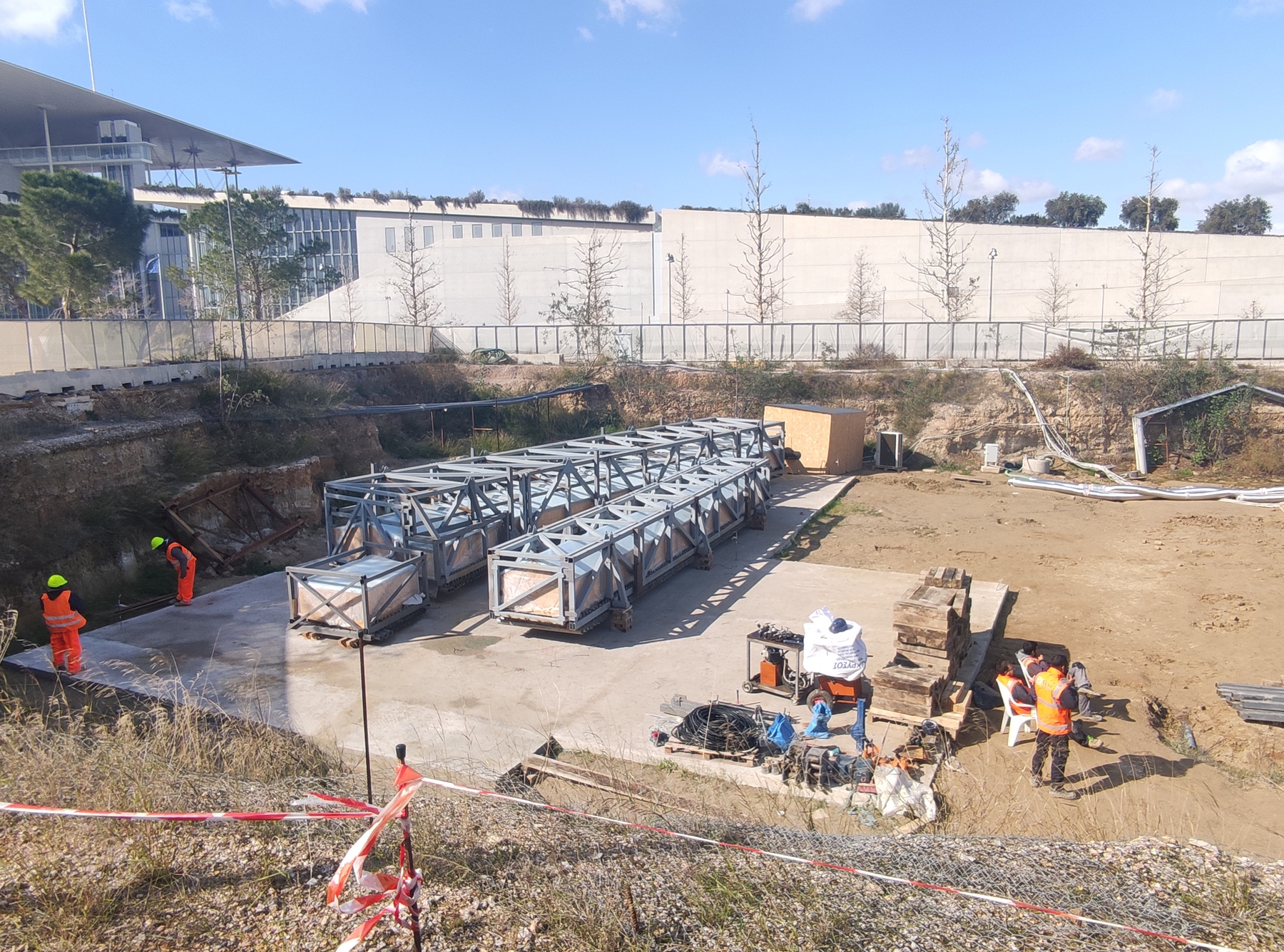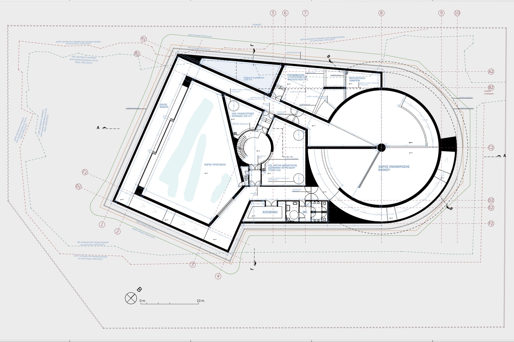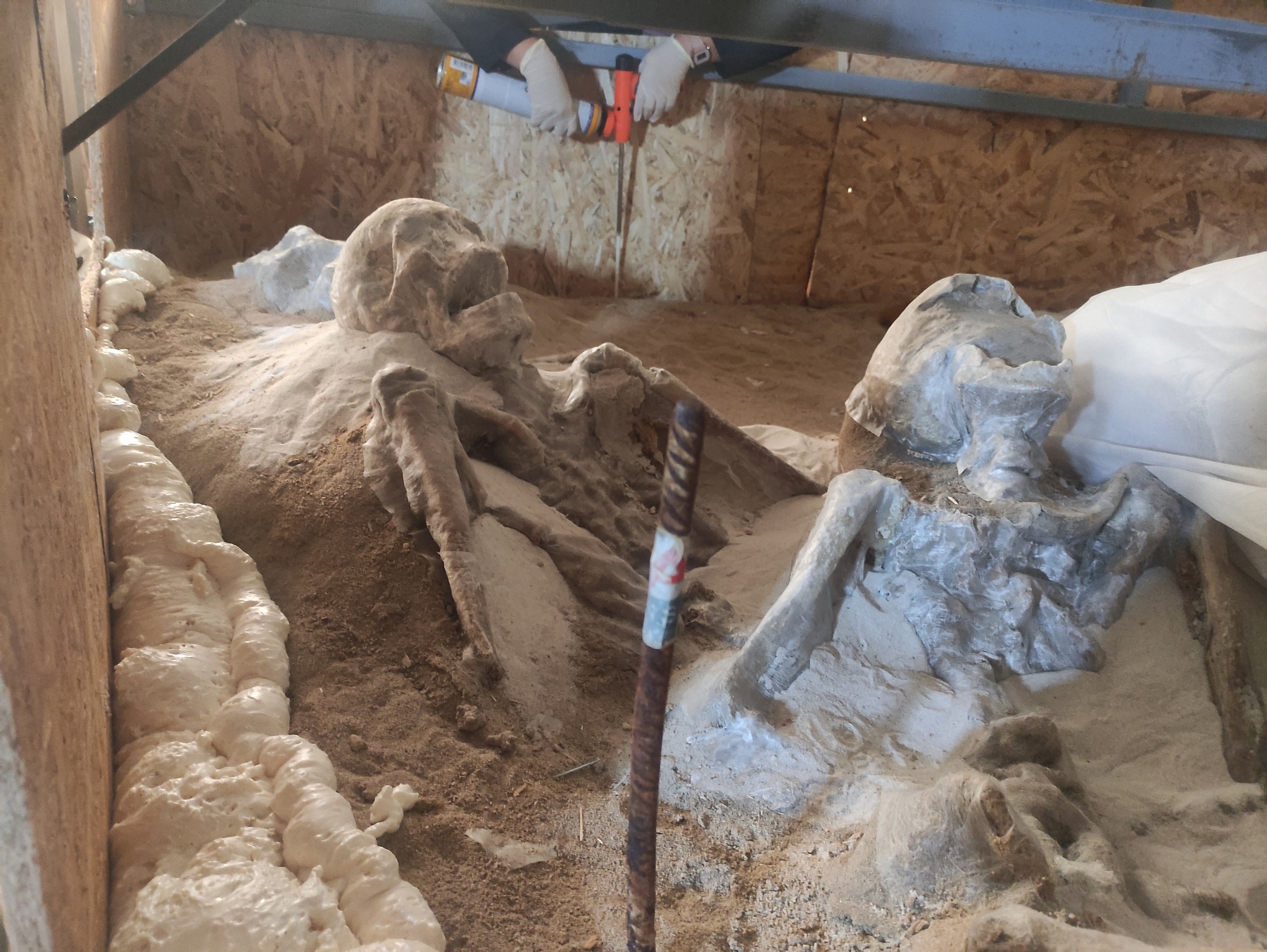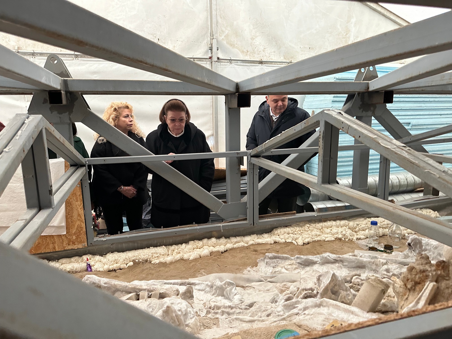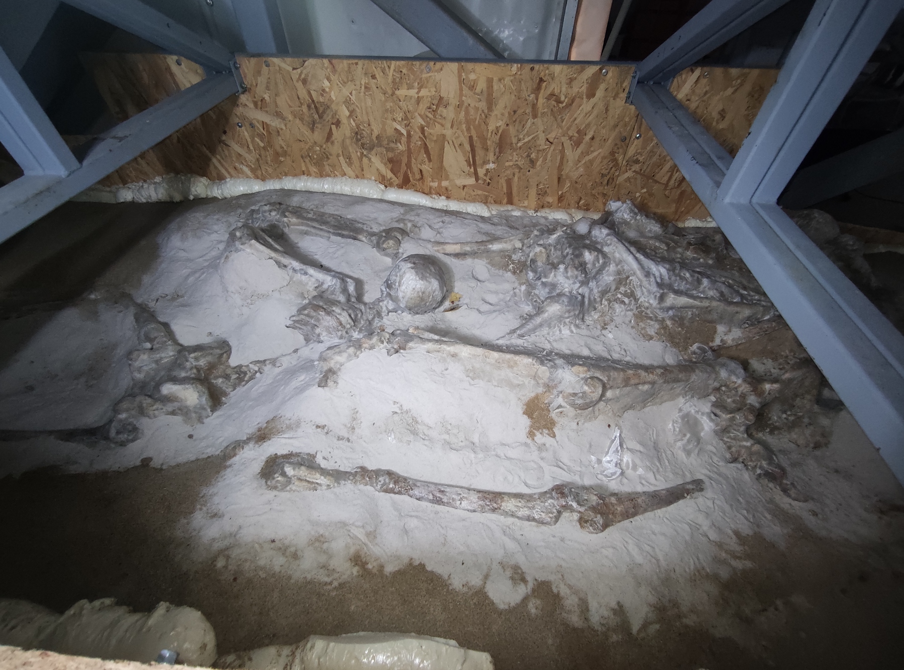 Παράλληλα, ολοκληρώνεται ο διαγωνισμός για την επιλογή του αναδόχου για την κατασκευή του μουσειακού κελύφους προστασίας και ανάδειξης του ευρήματος, στην ίδια θέση στην οποία αποκαλύφθηκαν. Το έργο, προϋπολογισμού περίπου 6.500.000 ευρώ χρηματοδοτείται από το Ταμείο Ανάκαμψης. Το κέλυφος αποτελείται από υπόγειο χώρο περίπου 450 τ.μ. για την προστασία του σκελετικού υλικού, και ενός επίγειου, έκτασης περίπου 425 τ.μ., που θα φιλοξενεί το εποπτικό υλικό, τις υποδομές λειτουργίας και τους χώρους εξυπηρέτησης των επισκεπτών. Οι αρχές του σχεδιασμού της κτηριακής υποδομής είναι αφ΄ενός μεν η αρμονική ένταξη του επίγειου τμήματος στην διαμορφωμένη Εσπλανάδα, και αφ΄ετέρου η διαμόρφωση ενός λιτού υπογείου κελύφους για την επανατοποθέτηση των «δεσμωτών», το οποίο θα επιτρέπει τη βέλτιστη θέαση και κατανόησή τους από τους επισκέπτες. Το σύνολο της μουσειακής υποδομής έχει σχεδιαστεί ώστε να είναι καθολικά προσβάσιμο.