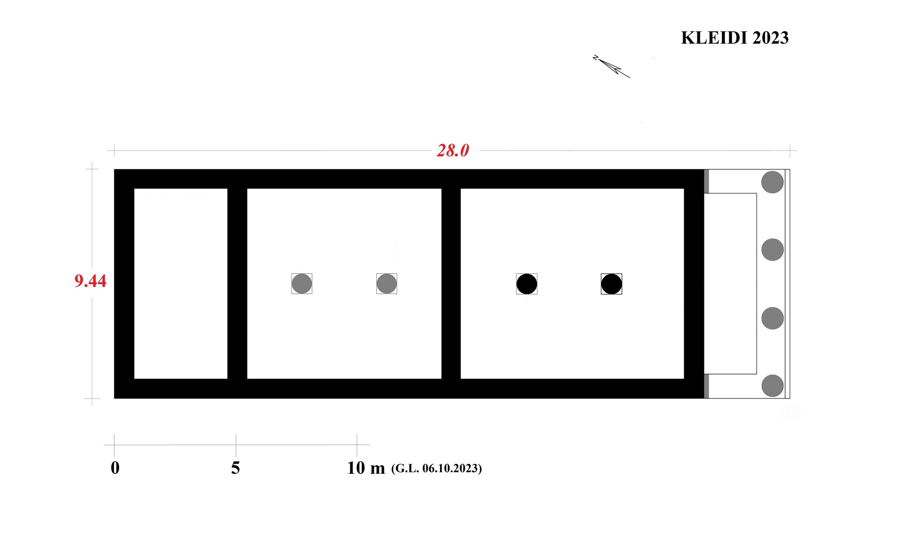 Εικ. 3: Προκαταρκτικό σχέδιο της κάτοψης του ναού στο Κλειδί (2023)