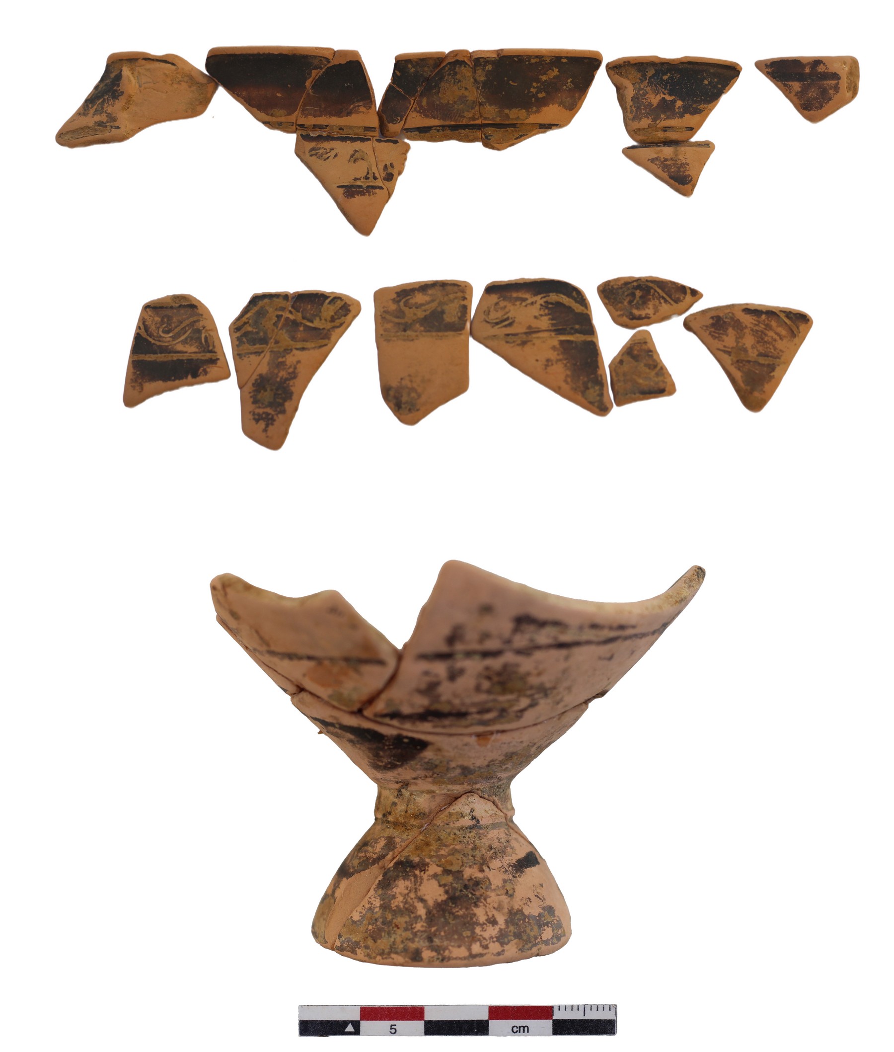 Εικ. 5: Θραύσματα κανθάρου του δεύτερου μισού του 4ου αιώνα π.Χ./ πρώιμου 3ου αι. π.Χ. που ήρθαν στο φως μέσα στο στρώμα των κεραμιδιών της στέγης του ναού