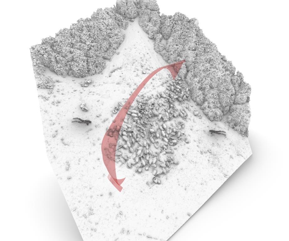 Η έρευνα του 2023 επικεντρώθηκε στον περιφερειακό καθαρισμό της δυτικής, ρηχότερης πλευράς του ναυαγίου από τις αποθέσεις άμμου, προκειμένου να αντιμετωπιστεί το φαινόμενο των κατολισθήσεων στον χώρο του ναυαγίου, λόγω της έντονης κλίσης του βυθού. Κατά τη διάρκεια της έρευνας, η οποία αντιμετώπισε πολλαπλές δυσκολίες, λόγω αντίξοων καιρικών συνθηκών, στο πρώτο δεκαπενθήμερο του Σεπτεμβρίου πραγματοποιήθηκαν 170 ομαδικές καταδύσεις και απομακρύνθηκαν 15 περίπου κυβικά μέτρα επιχώσεων, αποκαλύπτοντας μία εκτενή διασπορά φορτίου στην ρηχή πλευρά του ναυαγίου, κυρίως από συστοιχίες πινακίων. Η διασπορά των ευρημάτων στο βυθό φαίνεται να υποδηλώνει μία μερική απώλεια φορτίου, πριν το πλοίο βυθιστεί και καταλήξει στην τελική θέση απόθεσης, στη ζώνη των 40-50 μέτρων.