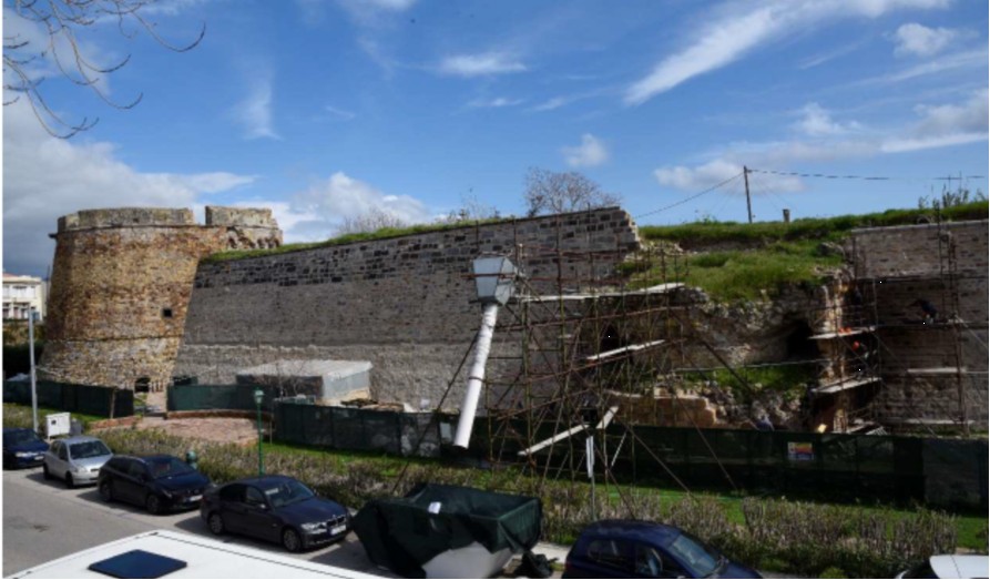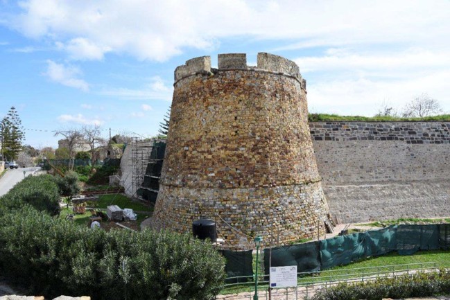 Προχωρούν συστηματικά οι εργασίες αποκατάστασης και ανάδειξης των χερσαίων τειχών του μεσαιωνικού Κάστρου της Χίου, του δεσπόζοντος μνημείου, στα βόρεια του λιμανιού του νησιού και της Χώρας. Η ίδρυση του ανάγεται στα 1328. Διαθέτει ισχυρούς προμαχώνες από τους οποίους σήμερα διατηρούνται οι οκτώ. Στους πύργους τριών, υπάρχουν εντοιχισμένες πλάκες με το έμβλημα των Ιουστινιάνι (ένα κάστρο με τρεις πύργους και εστεμμένος αετός) μνημονεύοντας το έτος κατασκευής ή επισκευής του οχυρωματικού έργου, στους χρόνους της Γενουατοκρατίας. Το τείχος αυτό, που κατά πολλούς ταυτίζεται με το προτείχισμα του μεσαιωνικού κάστρου (14ος - 15ος αιώνα), ανοικοδομήθηκε, καθ΄ ύψος, με την προσθήκη ενός κεκλιμένου τείχους, διαμορφώνοντας, κατ' αυτόν τον τρόπο, μία σχεδόν ενιαία επικλινή επιφάνεια, η οποία εξυπηρετούσε τόσο στη στατικότητα του οικοδομήματος, όσο και στην αμυντική του ικανότητα.