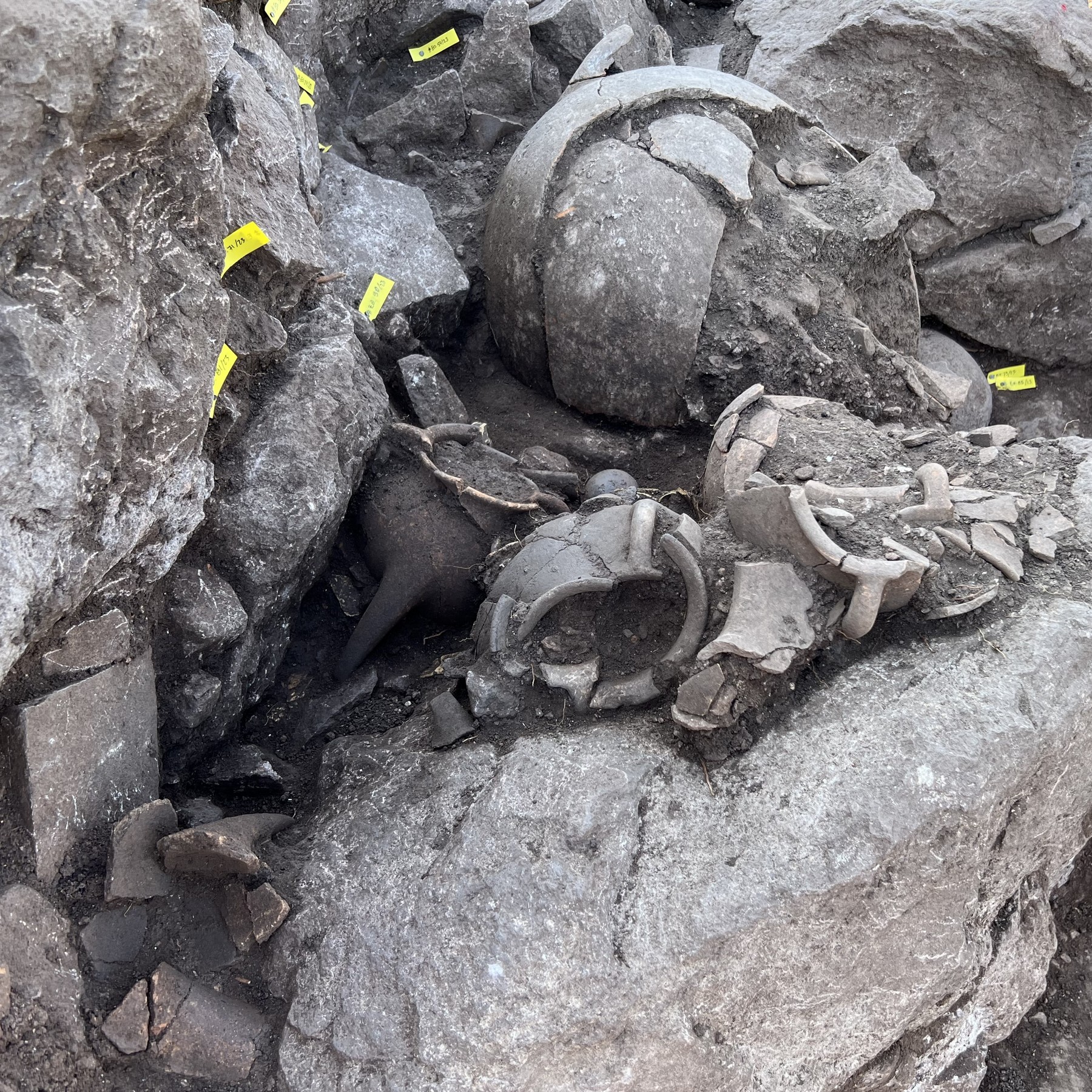 Εικ. 4: Το μυκηναϊκό κτίσμα με μερικά από τα αγγεία κατά την διάρκεια της ανασκαφής.