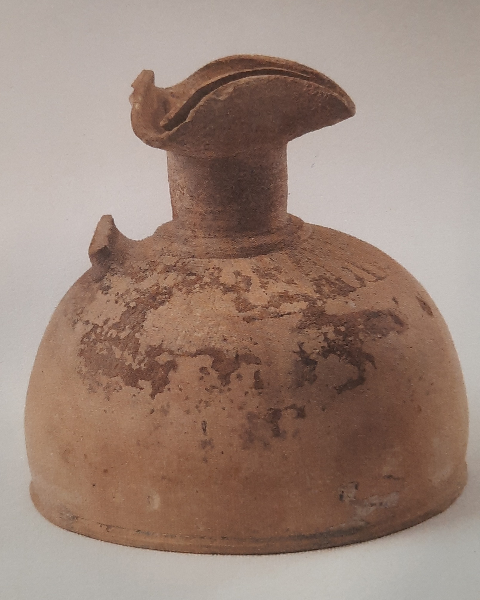 Αρχαιότητα που είχε απομακρυνθεί, κατά την περίοδο της Γερμανικής κατοχής, επιστράφηκε στην Ελλάδα, από τον Δήμο του Αννόβερου Γερμανίας και το Μουσείο August Kestner. Πρόκειται για μία τριφυλλόσχημη οινοχόη με πώμα, που χρονολογείται στο 620- 600 π.Χ., η οποία σώζει ίχνη από γραπτή διακόσμηση περιμετρικά του λαιμού. Το αγγείο είχε περιέλθει στο Μουσείο το 1986 από τον καθηγητή Γεωλογίας Δρ. Hannfrit Putzer και, σύμφωνα με επιστολή που το συνόδευε, το είχαν βρει Γερμανοί το 1943 κατά την διάρκεια εκσκαφών, στο νότιο άκρο της διώρυγας της Κορίνθου και του το είχαν παραδώσει. Μαζί με την επιστολή υπήρχε και σκαρίφημα που έδινε την θέση ανεύρεσης του αντικειμένου.