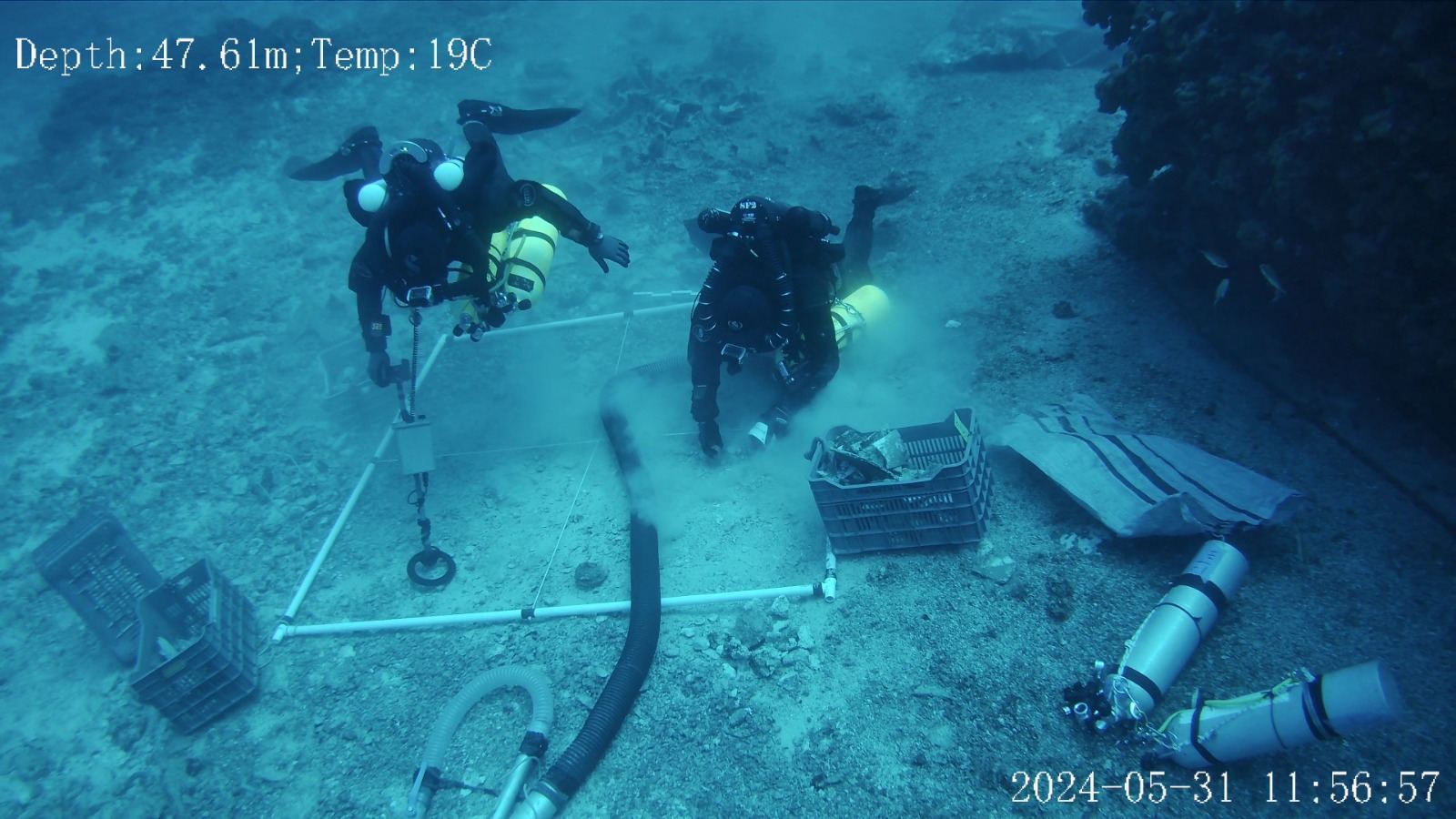 Στην έρευνα πεδίου έλαβαν μέρος ο Αλέξανδρος Σωτηρίου, συνεργαζόμενος ερευνητής του Πανεπιστημίου της Γενεύης και τεχνικός βυθού, και μια ομάδα καταδυόμενων αρχαιολόγων που αποτελούνταν από τους Michelle Creisher (Πανεπιστήμιο της Χάιφα), Isaac Ogloblin (Πανεπιστήμιο της Χάιφα) και Ορέστη Μανούσο, και τους εξειδικευμένους δύτες Νικόλαο Γιαννουλάκη, Στυλιανό Ματσουκατίδη, Χάρη Μήτρου και Δημήτρη Σταμούλη. Η ομάδα συμπληρώθηκε με τη συμμετοχή έξι μελών της Μονάδας Υποβρύχιων Αποστολών του Λιμενικού Σώματος (Ομάδα Ειδικών Καταδύσεων), αποτελούμενη από τους Δημήτριο Χατζηασλάν, Αχιλλέα Γκανέλα, Αθανάσιο Κεϊτζή, Δημήτριο Κιόση, Δημήτριο Κρεμμύδα και Γεώργιο Λυτρίβη.