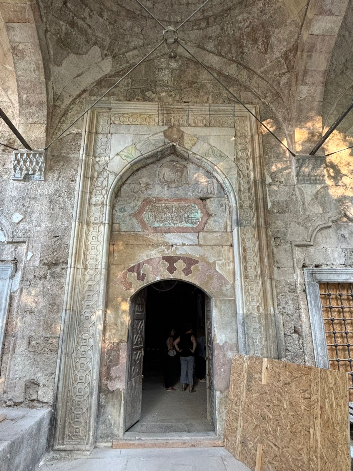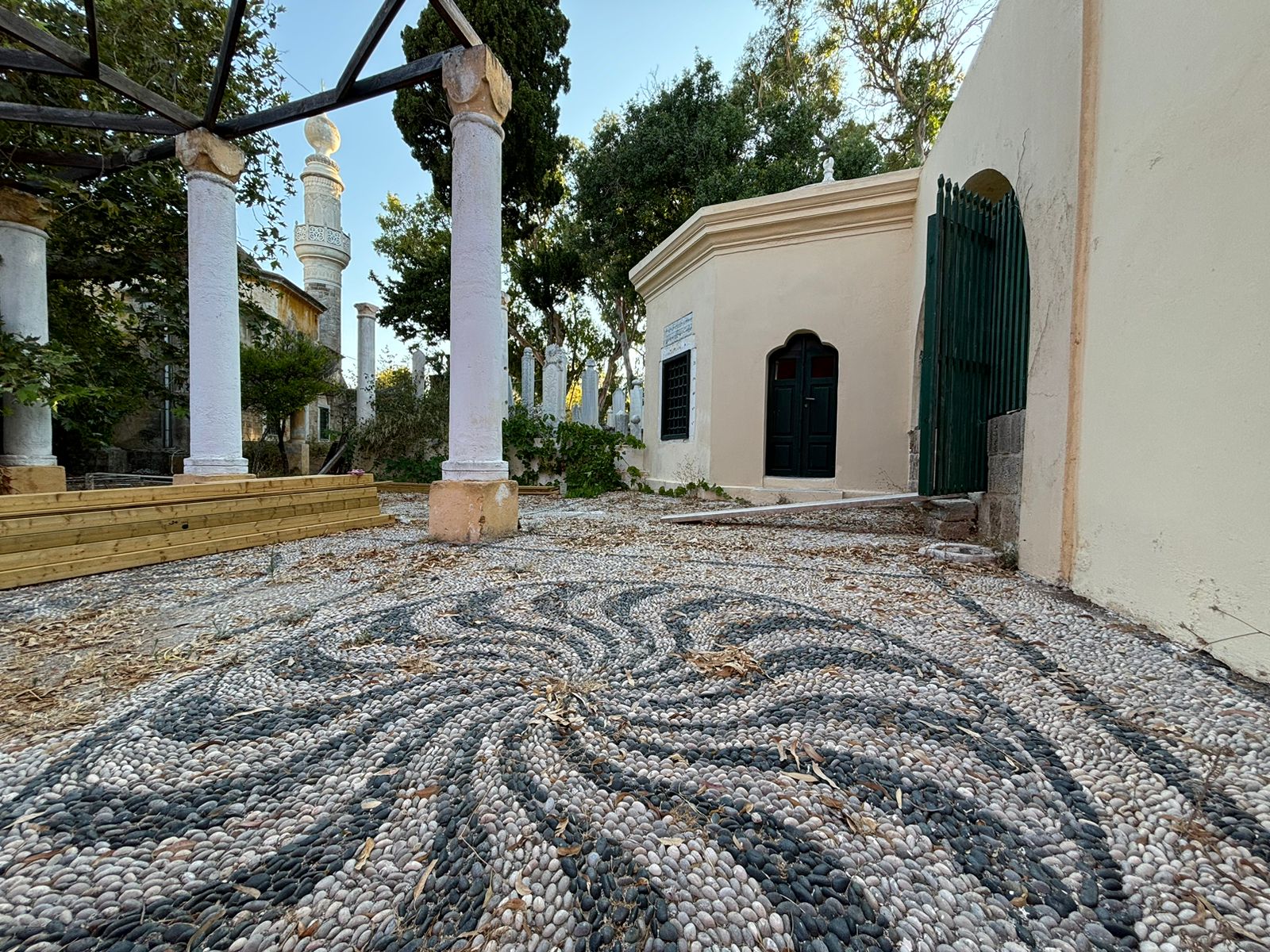 Ακολούθησε αυτοψία στο τέμενος Μουράτ Ρέις ένα σύνθετο και εμβληματικό έργο, στο οποίο οι εργασίες που υλοποιούνται εξελίσσονται εντός χρονοδιαγράμματος. Το μνημείο παρέμεινε κλειστό από το 2000. Το τέμενος Μουράτ Ρέις, το οποίο κατασκευάστηκε το 1636 και πήρε στη σημερινή του μορφή το 1797 και αποτελεί ένα πολύ σημαντικό μνημείο της τοπικής μουσουλμανικής ιστορίας. Συγχρόνως, είναι ένα ιδιαίτερο δείγμα αρχιτεκτονικής, που συνδυάζει χαρακτηριστικά της εποχής του οθωμανικού μπαρόκ, με αιγυπτιακά και νεοκλασικά στοιχεία. Το συγκρότημα Μουράτ Ρέις, έκτασης 8 στρεμμάτων, αποτελεί διεθνές προσκύνημα. το οποίο δημιουργήθηκε τον 17ο αιώνα, εκτός των μεσαιωνικών τειχών, στο θαλάσσιο μέτωπο, πλησίον του διοικητικού κέντρου της πόλης. Περιλαμβάνει τον τάφο του Μουράτ Ρέις και το ομώνυμο τέμενος, την κρήνη των καθαρμών, έναν «τεκέ» (ασκητήριο, ησυχαστήριο δερβίσηδων), την κατοικία του φύλακα και το νεκροταφείο, στο οποίο ξεχωρίζουν 7 θολωτά μαυσωλεία (τουρμπέδες). Με την υλοποίηση του έργου αντιμετωπίζονται ολιστικά τα στατικά και δομικά προβλήματα του τεμένους και των μαυσωλείων. Επιπλέον, ιδιαίτερη μέριμνα δίνεται στη διαμόρφωση του περιβάλλοντος χώρου του μνημειακού τόπου. Στο πλαίσιο αυτό, η Εφορεία Αρχαιοτήτων Δωδεκανήσου αξιοποιώντας το έργο ταξινόμησης και καταγραφής του αρχαιολογικού υλικού στην Περβόλα, υλοποιεί έκθεση επιτύμβιων οθωμανικών στηλών, εντός του μνημειακού συγκροτήματος. Ήδη έχει ολοκληρωθεί η καταγραφή 400 στηλών, οι οποίες και έχουν μεταφερθεί στον χώρο.