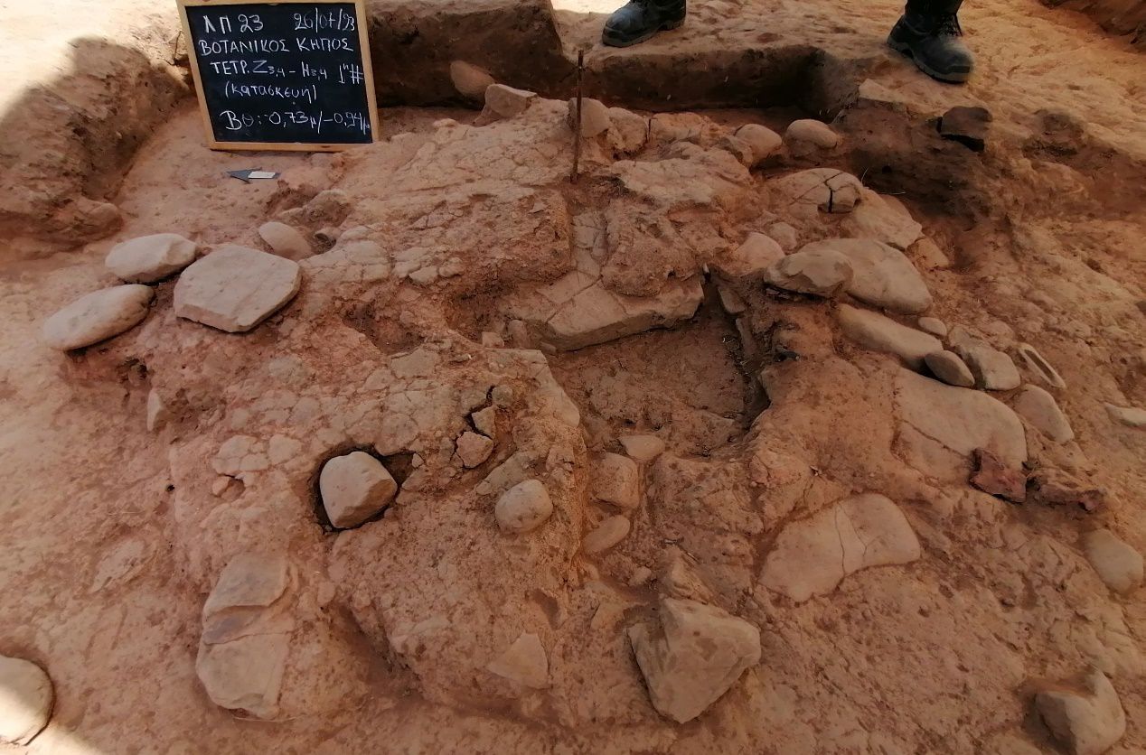 Ολοκληρώθηκε πρόσφατα η τρίτη ανασκαφική περίοδος, στη Νεολιθική θέση «Βοτανικός Κήπος», στις δυτικές όχθες της Λίμνης Πλαστήρα[1] (εικ. 1), όπου έχει εντοπιστεί, σε υψόμετρο 800μ, νεολιθική εγκατάσταση. Σε βάθος περίπου 1μ. κάτω από την επιφάνεια, εντοπίστηκε η κύρια επιφάνεια χρήσης του χώρου που σύμφωνα με ραδιοχρονολογήσεις ανάγεται στη μετάβαση από το τέλος της Αρχαιότερης /έναρξη της Μέσης Νεολιθικής (5999-5845 π.Χ.-OxA 18194). Τα ευρήματα πιστοποιούν ότι πρόκειται για μια θέση που είχε αυτονομία στα υλικά των πρώτων υλών, όπως πηλός για την κατασκευή αγγείων και πυριτόλιθος διαφόρων ποικιλιών, ενώ βρέθηκε πληθώρα τριπτών εργαλείων και πολλών μυλόλιθων φτιαγμένων από ψαμμίτη που βρίσκεται στο φυσικό υπόβαθρο της θέσης. Η κεραμική είναι κατά κανόνα μονόχρωμη, κατασκευασμένη επί τόπου, αφού αποκαλύφθηκαν δύο μέχρι στιγμής συγκροτήματα κεραμικών κλιβάνων (εικ. 2), όπου βρίσκονται ενσωματωμένα σφαιρικά κυρίως αγγεία, προφανώς στη θέση όπτησής τους. Εκτιμάται, σύμφωνα με τη στρωματογραφία, ότι και άλλοι κλίβανοι θα βρεθούν στη συνέχεια. Η παρουσία κεραμικών κλιβάνων σε τόσο πρώιμη περίοδο είναι μια πολύ πρόσφατη πληροφορία από άλλες τρεις θέσεις της Θεσσαλίας. Ότι εντοπίστηκαν εδώ καταδεικνύει την αυτονομία αυτής της ορεινής θέσης και πιθανόν και τον μονιμότερο χαρακτήρα της εγκατάστασης. Έχουν βρεθεί επίσης «ιδιοκατασκευές» για διάφορες χρήσεις, πιθανόν και ένας φούρνος (εικ. 3). Μια μεγάλη έκταση καλύπτεται από πυρακτωμένες επιχώσεις που περιορίζονται από την παρουσία πλινθόκτιστου τοίχου, όπου έχουν βρεθεί εστίες, πασσαλότρυπες και άλλα κινητά ευρήματα.