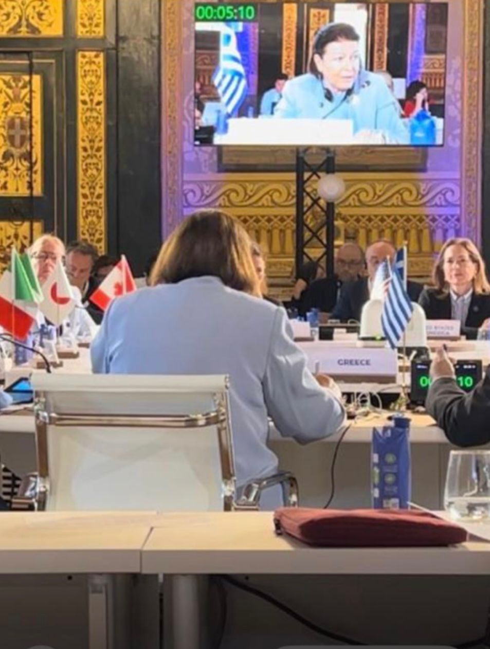 Η Υπουργός Πολιτισμού Λίνα Μενδώνη, απάντησε ότι «Η πρόσκληση της Ελλάδας και η συμμετοχή της στη Σύνοδο των Υπουργών Πολιτισμού της G7 αποτελεί προνόμιο για την πατρίδα μας». Συνεχάρη την Ιταλική Προεδρία της G7, για τη σημαντική πρωτοβουλία που ανέλαβε σχετικά με την Αφρική και την πλούσια πολιτιστική άυλη και υλική κληρονομιά που διαθέτει, επισημαίνοντας ότι «εκ μέρους του Πρωθυπουργού, Κυριάκου Μητσοτάκη, σας δηλώνω ότι η Ελλάδα είναι έτοιμη να μοιραστεί τις καλές πρακτικές και την εμπειρία της, προωθώντας τον πολιτισμό, ως οδηγό για τη βιώσιμη ανάπτυξη. Μαζί, μπορούμε να εξασφαλίσουμε ότι η πλούσια πολιτιστική κληρονομιά της Αφρικής μπορεί να συμβάλει όχι μόνο στη βιώσιμη ανάπτυξη της ίδιας της ηπείρου, αλλά και συνολικά του πλανήτη».