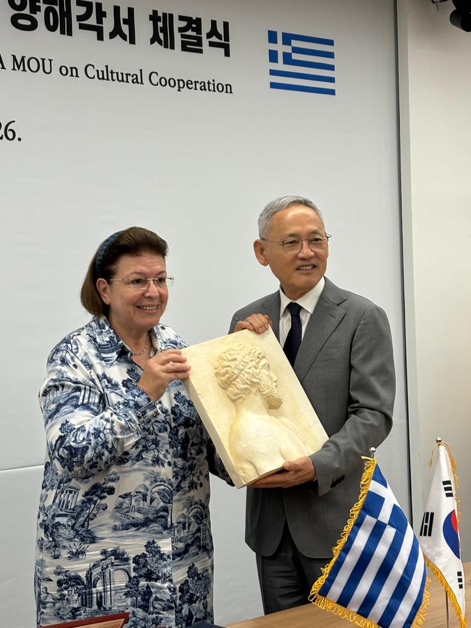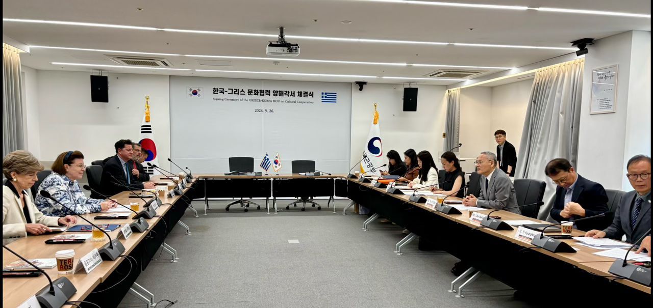 Η Υπουργός Πολιτισμού Λίνα Μενδώνη υπέγραψε Μνημόνιο Κατανόησης Πολιτιστικής Συνεργασίας με τον Υπουργό Πολιτισμού, Αθλητισμού και Τουρισμού της Δημοκρατίας της Κορέας Yu In-Chon. Οι δύο υπουργοί, κατά τη συνάντηση εργασίας τόνισαν τις άριστες πολιτικές και διπλωματικές σχέσεις που υφίστανται μεταξύ Ελλάδας και Κορέας, οι οποίες σφυρηλατήθηκαν στην δύσκολη περίοδο του κορεατικού πολέμου. Επισήμαναν την ανάγκη ενίσχυσης της πολιτιστικής συνεργασίας, μέσω της άμεσης εφαρμογής του Μνημονίου Κατανόησης το οποίο υπέγραψαν που αντανακλά τις νέες κατευθύνσεις συνεργασίας των δυο χωρών στους τομείς της πολιτιστικής κληρονομιάς και της σύγχρονης δημιουργίας, που επιθυμούν η Ελλάδα και η Κορέα.