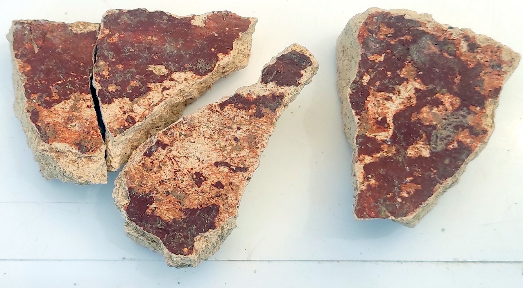 Βρέθηκαν και πεσμένα κονιάματα με τμήματα από τοιχογραφίες, ορισμένα εκ των οποίων σώζουν κυανό και ερυθρό χρώμα. Στο δυτικότερο τμήμα τέλος,  αποκαλύφθηκε μέρος της πρόσοψης μιας θύρας, η οποία διατηρεί το υπέρθυρο και βάση παραστάδας, στο βόρειο τμήμα της, από λαμπερό γυψόλιθο.