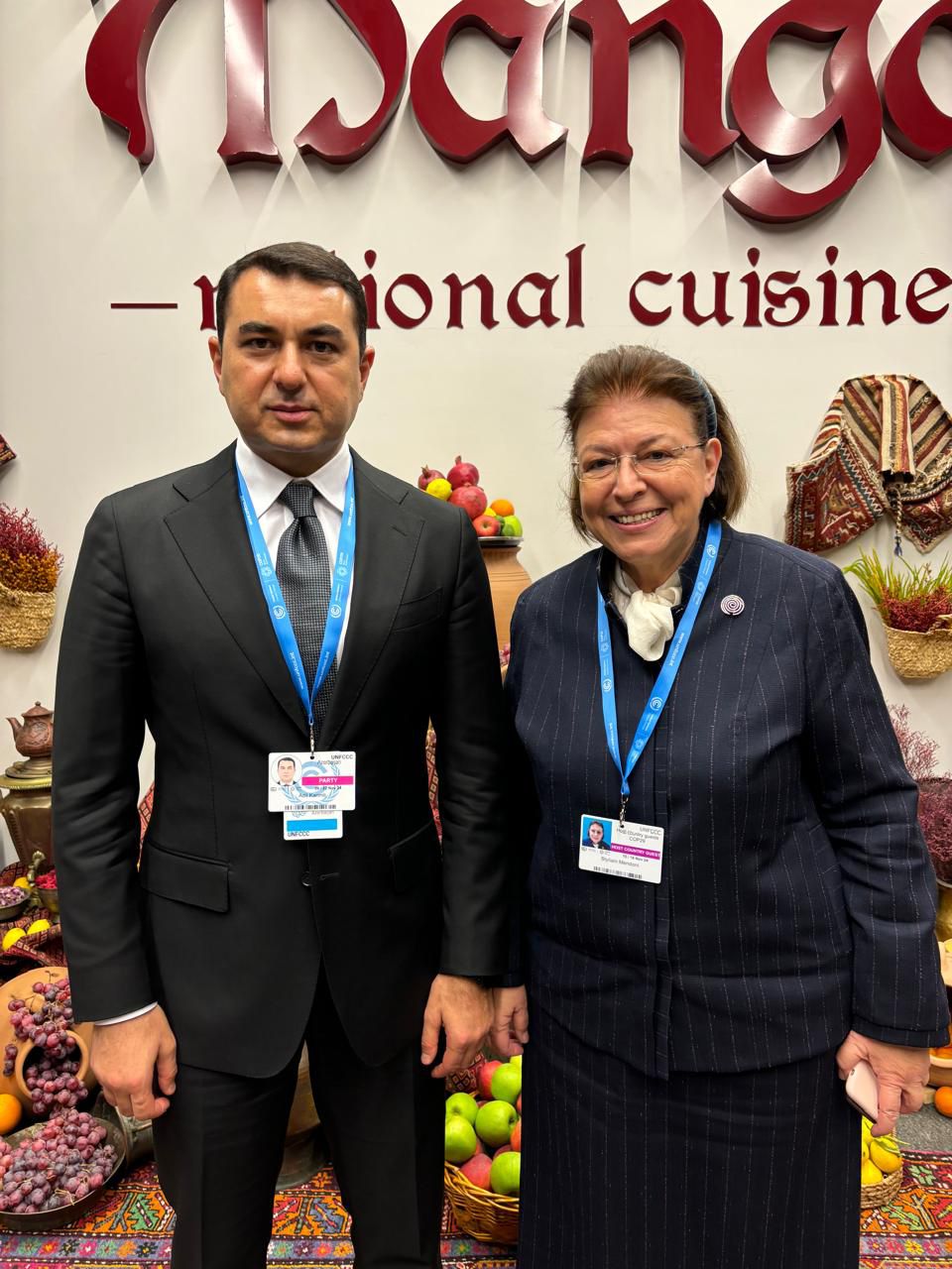 Η Υπουργός Πολιτισμού της Ελλάδας είχε συνάντηση εργασίας με τον ομόλογό της του Αζερμπαϊτζάν, Adil Karimli, τον οποίον και συνεχάρη για τη διοργάνωση της COP29. Ο Αζέρος Υπουργός επεσήμανε το σημαντικό έργο που έχει επιτελέσει η Ελλάδα για την προστασία της πολιτιστικής κληρονομιάς από τις καταστροφικές συνέπειες της κλιματικής κρίσης, στο πλαίσιο της διεθνούς πρωτοβουλίας που έχει αναλάβει η Ελληνική Κυβέρνηση, από το 2019. Στο πυρήνα της συνεργασίας και εξέλιξης των διμερών πολιτιστικών σχέσεων των δύο χωρών βρίσκονται η προστασία, η διατήρηση και η ενίσχυση της πολιτιστικής κληρονομιάς συμπεριλαμβανομένης της χειροτεχνίας και των παραδοσιακών πρακτικών, ο σύγχρονος πολιτισμός και οι δημιουργικές και πολιτιστικές βιομηχανίες.