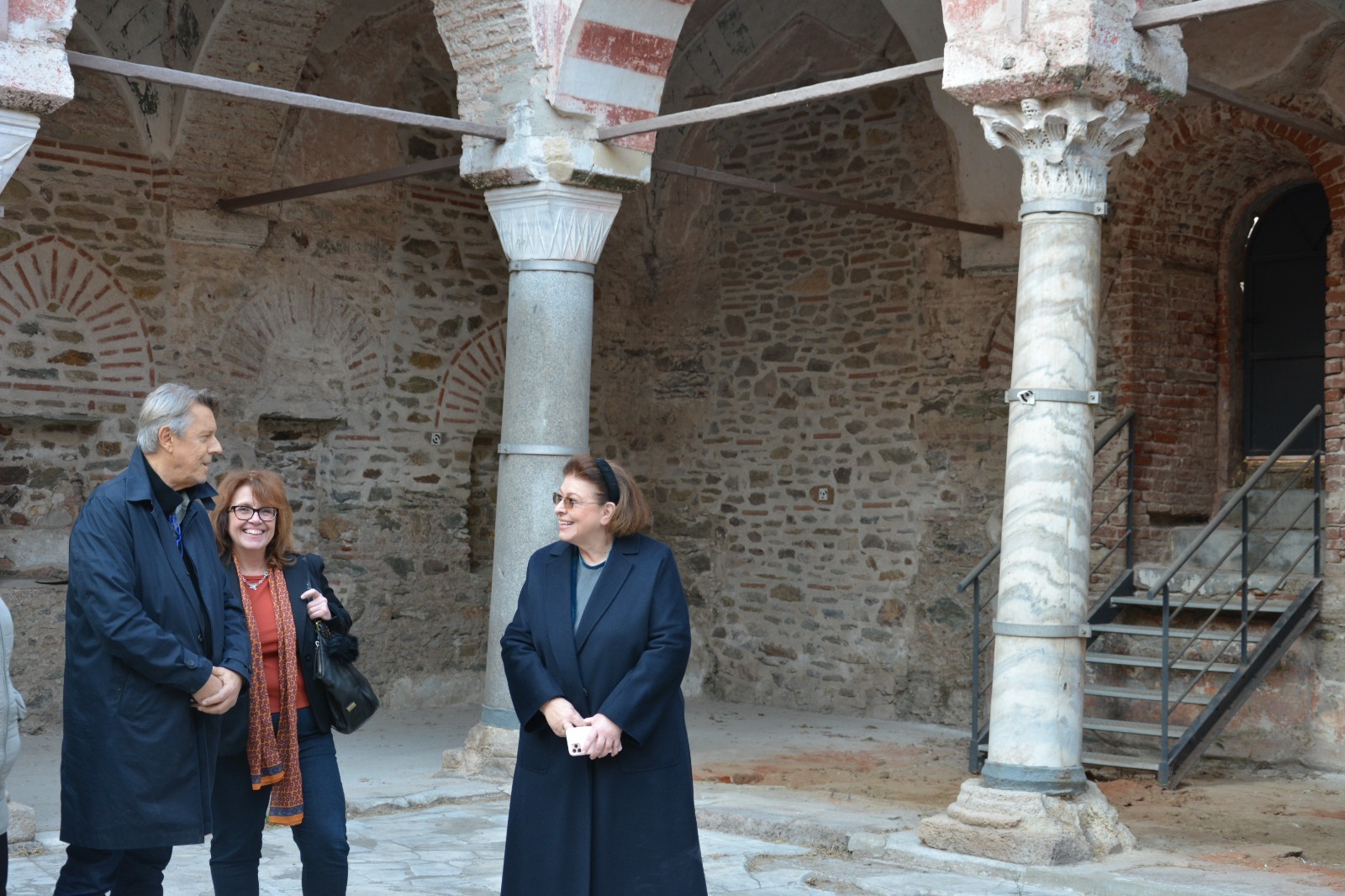 Τη Λίνα Μενδώνη στην αυτοψία συνόδευσαν ο Γενικός Γραμματέας Πολιτισμού Γιώργος Διδασκάλου, οι προϊστάμενοι των Διευθύνσεων Αναστήλωσης Βυζαντινών και Μεταβυζαντινών Μνημείων και Βυζαντινών και Μεταβυζαντινών Αρχαιοτήτων Θέμις Βλαχούλης και Ιουλία Παπαγεωργίου, αντίστοιχα, η προϊσταμένη της Εφορείας Αρχαιοτήτων Πόλης Θεσσαλονίκης Ελισάβετ Τσιγαρίδα και άλλα υπηρεσιακά στελέχη του ΥΠΠΟ.