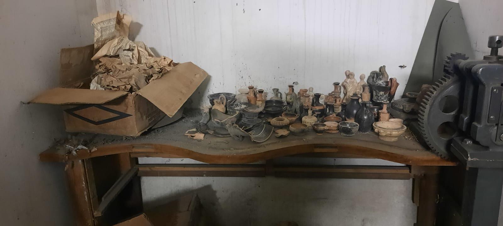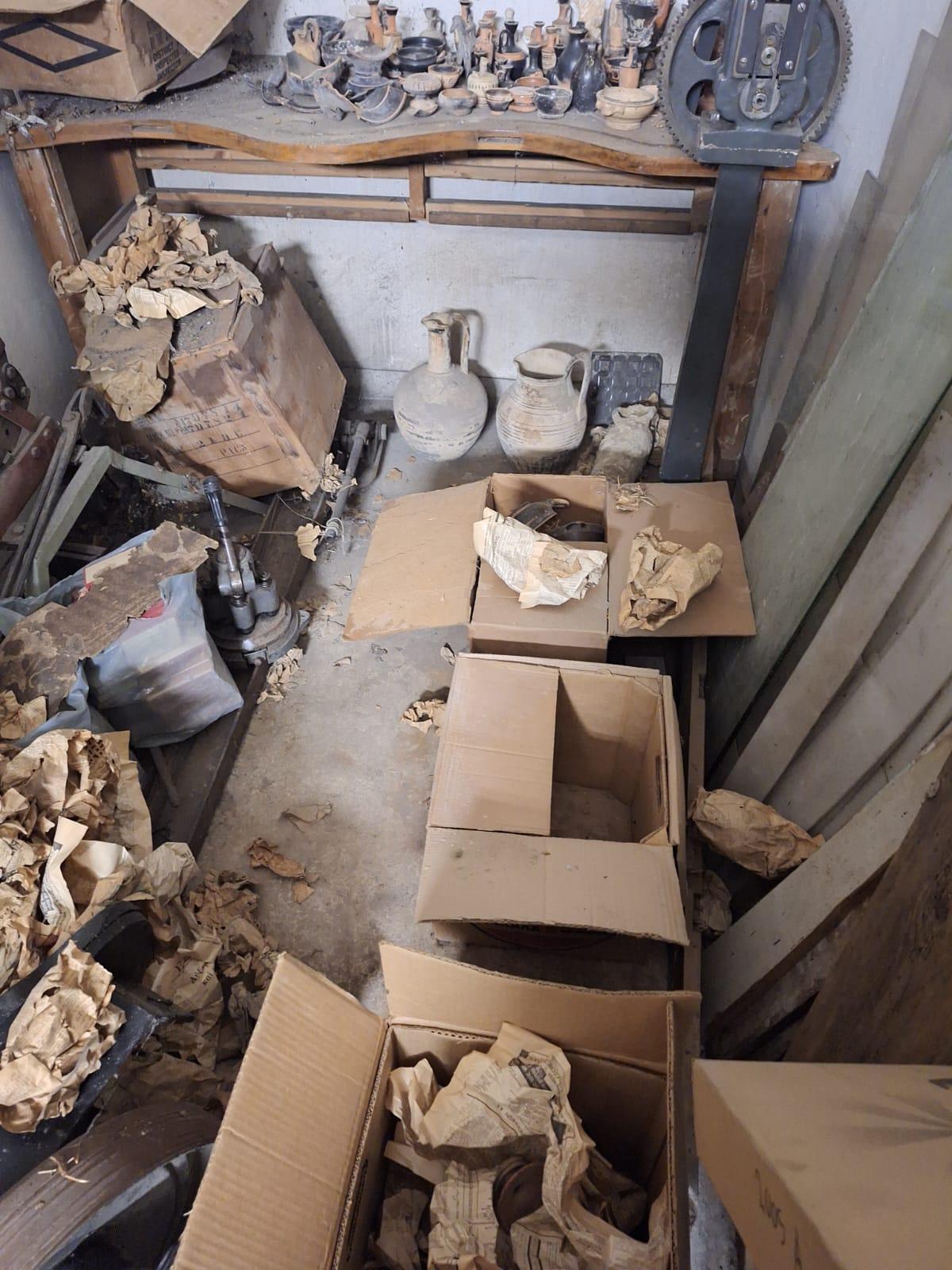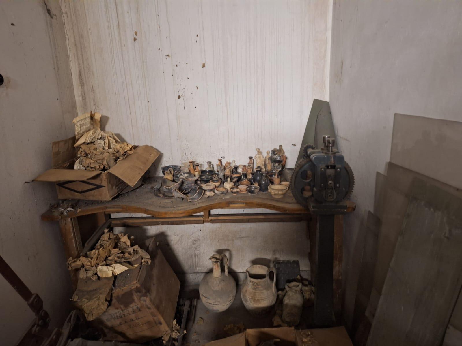 Κατά τον εντοπισμό των αρχαίων αντικειμένων τον Φεβρουάριο του 2024, ο αρμόδιος εκπρόσωπος της Εθνικής Πινακοθήκης - Μουσείου Αλέξανδρου Σούτσου (ΕΠΜΑΣ) ενημέρωσε άμεσα το Υπουργείο Πολιτισμού για τα ευρήματα. Αρχαιολόγοι από τη Διεύθυνση Τεκμηρίωσης και Προστασίας Πολιτιστικών Αγαθών (ΔΤΠΠΑ) και το Νομισματικό Μουσείο πραγματοποίησαν αυτοψία στον χώρο. Εντοπίστηκαν και καταγράφηκαν 102 αρχαία αντικείμενα που χρονολογούνται στους γεωμετρικούς μέχρι τους ελληνιστικούς χρόνους (κύλικες, κάνθαροι, λεκανίδες, λήκυθοι, σκύφοι, ειδώλια κ.α.), 36 αντικείμενα θρησκευτικού χαρακτήρα μεταβυζαντινών χρόνων (εικόνες, ασημένιες επενδύσεις, αρχιερατική ράβδος και άλλα εκκλησιαστικά αντικείμενα), καθώς και 3.247 νομίσματα, μετάλλια, σφραγιδόλιθοι, σταθμία, μολυβδόβουλα που χρονολογούνται από τους αρχαίους έως τους νεώτερους χρόνους.