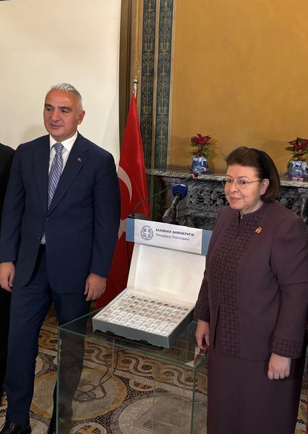 Επεστράφησαν σήμερα, σε τελετή που πραγματοποιήθηκε στο Νομισματικό Μουσείο, παρουσία της Υπουργού Πολιτισμού, Λίνας Μενδώνη και του Υπουργού Πολιτισμού και Τουρισμού της Τουρκίας Mehmet Nuri Ersoy, 1055 αρχαία νομίσματα τα οποία επιχειρήθηκε το 2019 να εισαχθούν παράνομα στην Ελλάδα από την Τουρκία.