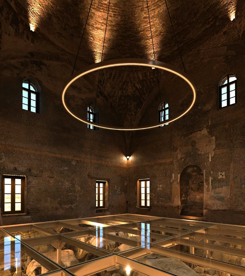 Τα ευρήματα παραμένουν ορατά εντός του τεμένους και αναδεικνύονται αισθητικά με τον κατάλληλο φωτισμό. Σύμφωνα με τη μελέτη φωτισμού του μνημείου, οι ανάγκες διακρίνονται σε εσωτερικό και εξωτερικό φωτισμό ανάδειξης, και σε λειτουργικό φωτισμό για την πραγματοποίηση πολιτιστικών εκδηλώσεων.