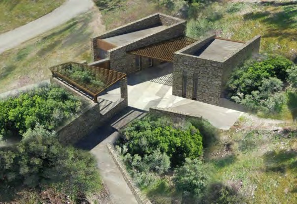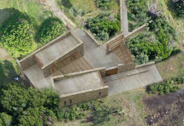 Ως προς τις υποδομές στον αρχαιολογικό χώρο, οι εγκεκριμένες εγκαταστάσεις εισόδου και στάθμευσης, χωροθετούνται νοτιότερα της επαρχιακής οδού με στόχο τη διεύρυνση του αρχαιολογικού χώρου. Προβλέπεται η κατασκευή δύο ανεξάρτητων κτηρίων. Το κτήριο Α' στεγάζει το εκδοτήριο-φυλάκιο και το πωλητήριο και το κτήριο Β' στεγάζει σημείο πληροφόρησης και χώρους υγιεινής. Ανάμεσα στους κτηριακούς όγκους διαμορφώνεται αυλή στεγασμένη με πέργκολα. Η αυλή λειτουργεί ως χώρος εισόδου και συγκέντρωσης κοινού.
