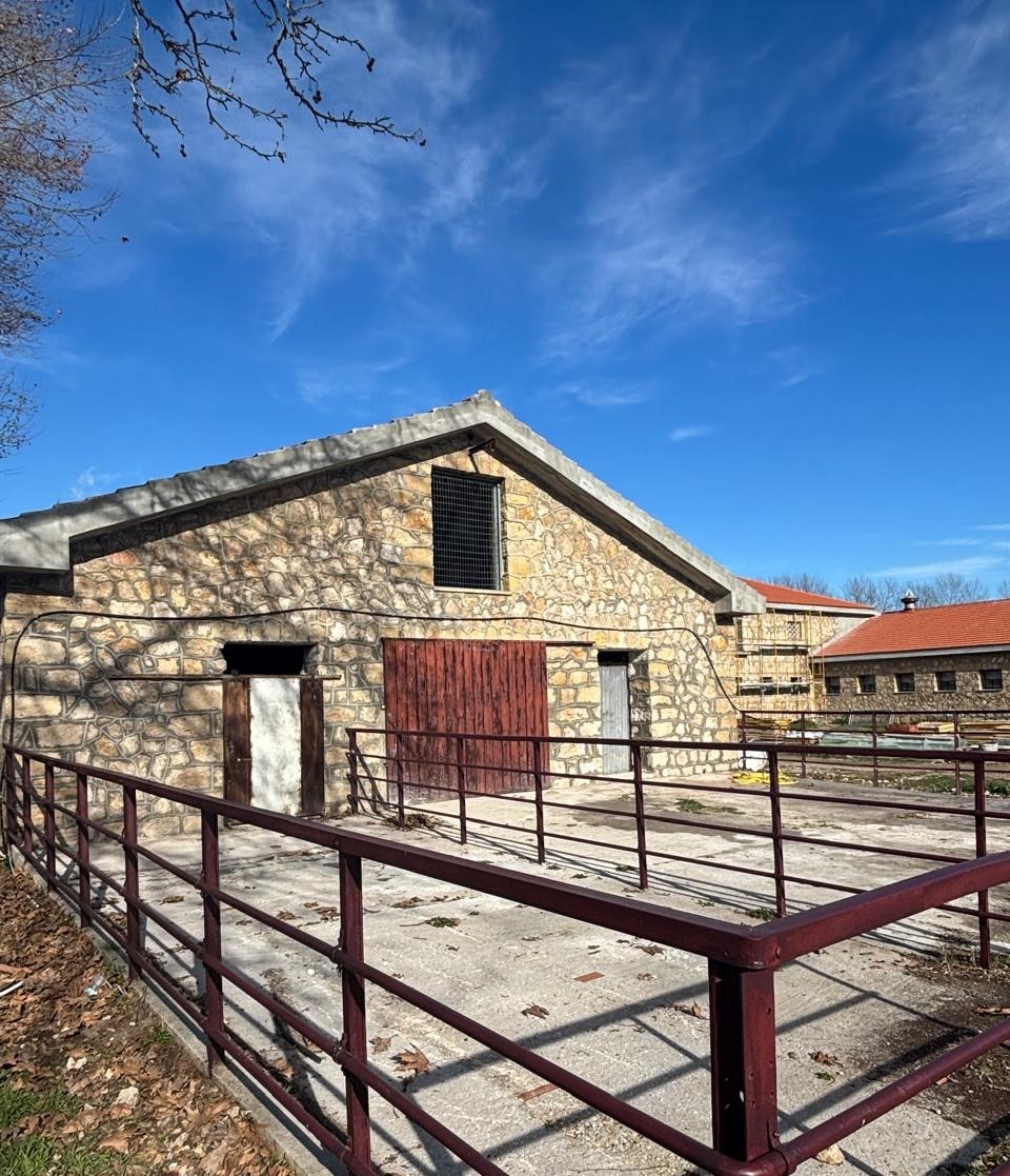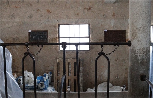 H συνολική επιφάνεια του κτηρίου είναι περίπου 1500 τ.μ. και διαμορφώνεται σε σχήμα «Π».  Το κεντρικό τμήμα είναι διώροφο και επίμηκες, ενώ τα δύο σκέλη είναι ισόγεια και μικρότερης έκτασης. Η κάτω στάθμη φιλοξενούσε τα βοοειδή με τις ταΐστρες και τον λοιπό εξοπλισμό. Η άνω στάθμη του μεσαίου σκέλους χρησιμοποιούνταν ως χώρος παρασκευής των τροφών που διοχετεύονταν με κατάλληλα κανάλια στην κάτω στάθμη. Είχε χωρητικότητα 90 ζώων, με τον αριθμό αυτό να φτάνει ενίοτε τα 100, κι απασχολούσε 4 σταβλίτες.