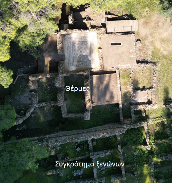 Σύμφωνα με τις μελέτες, προβλέπεται η ανάκτηση των χώρων που παρέσυρε ο Κλαδέος, προκειμένου να αποκατασταθεί το περίγραμμα της κάτοψης του μνημείου, καθώς και η ανάκτηση τμημάτων δαπέδων των περιοχών που έχουν παρασυρθεί. Τα δάπεδα των θερμαινόμενων χώρων επιχώνονται στην αρχική στάθμη-χρήση, γίνεται απορροή των ομβρίων από τα δάπεδα του μνημείου, προβλέπονται αποκαταστάσεις τοίχων κατά το αρχαίο σύστημα δόμησης, αλλά και κατασκευή νέας πρόσβασης. Η διαδρομή θα διασχίζει τα ψηφοθετημένα δάπεδα- πραγματοποιήθηκαν εργασίες στερέωσης και συντήρησης, κατά τα έτη τα έτη 2002-2003, από τη Διεύθυνση Συντήρησης Αρχαίων και Νεώτερων Μνημείων του ΥΠΠΟ- και στη συνέχεια θα διέρχεται από τους θερμούς χώρους και το αποδυτήριο. Προκειμένου να παραμείνει ορατός ο αγωγός της κολυμβητικής δεξαμενής των κλασικών χρόνων, προβλέπεται στην περιοχή αυτή κλιμακωτή επίχωση. Επίσης, προβλέπονται η ανάδειξη του αποχωρητηρίου με συντήρηση των κεραμικών στοιχείων του, η μετάθεση τμήματος της περίφραξης για να είναι δυνατή η ανάκτηση χώρων του μνημείου και η τοποθέτηση ενημερωτικών πινακίδων κατά μήκος της διαδρομής κίνησης επισκεπτών. Η στατική μελέτη περιλαμβάνει προτάσεις αποκατάστασης με συμπλήρωση των σπηλαιώσεων, επιδιόρθωση ρωγμών, κατασκευή αντιστήριξης του πρανούς του Κλαδέου, επιχώσεις και διαμορφώσεις επιπέδων.