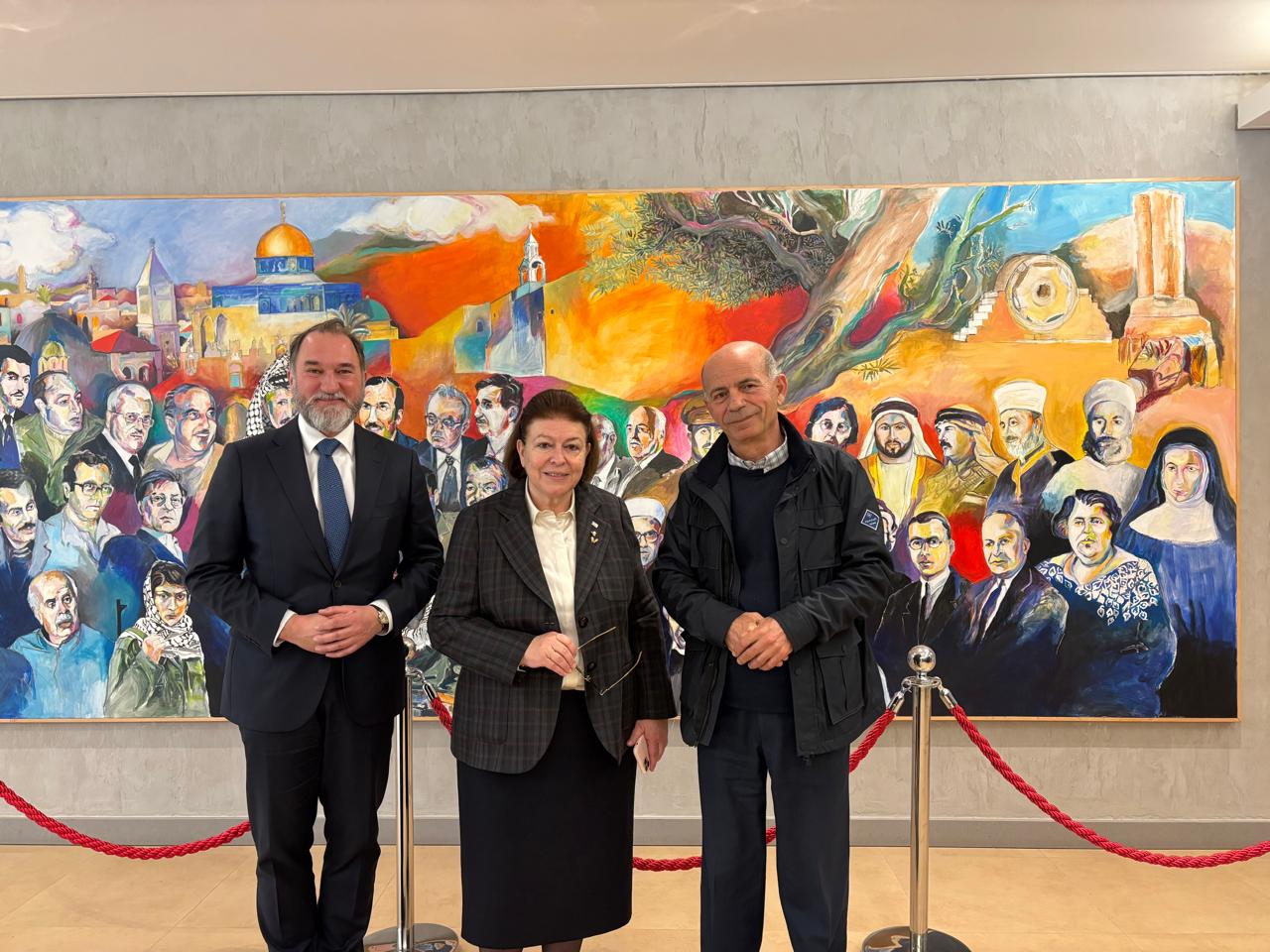 Κατά την επίσκεψή της στη Ραμάλα, η Λίνα Μενδώνη επισκέφθηκε το Κρατικό Μουσείο «Γιάσερ Αραφάτ» και ξεναγήθηκε από τον Διευθυντή του Μοχάμεντ Χαλάικα.