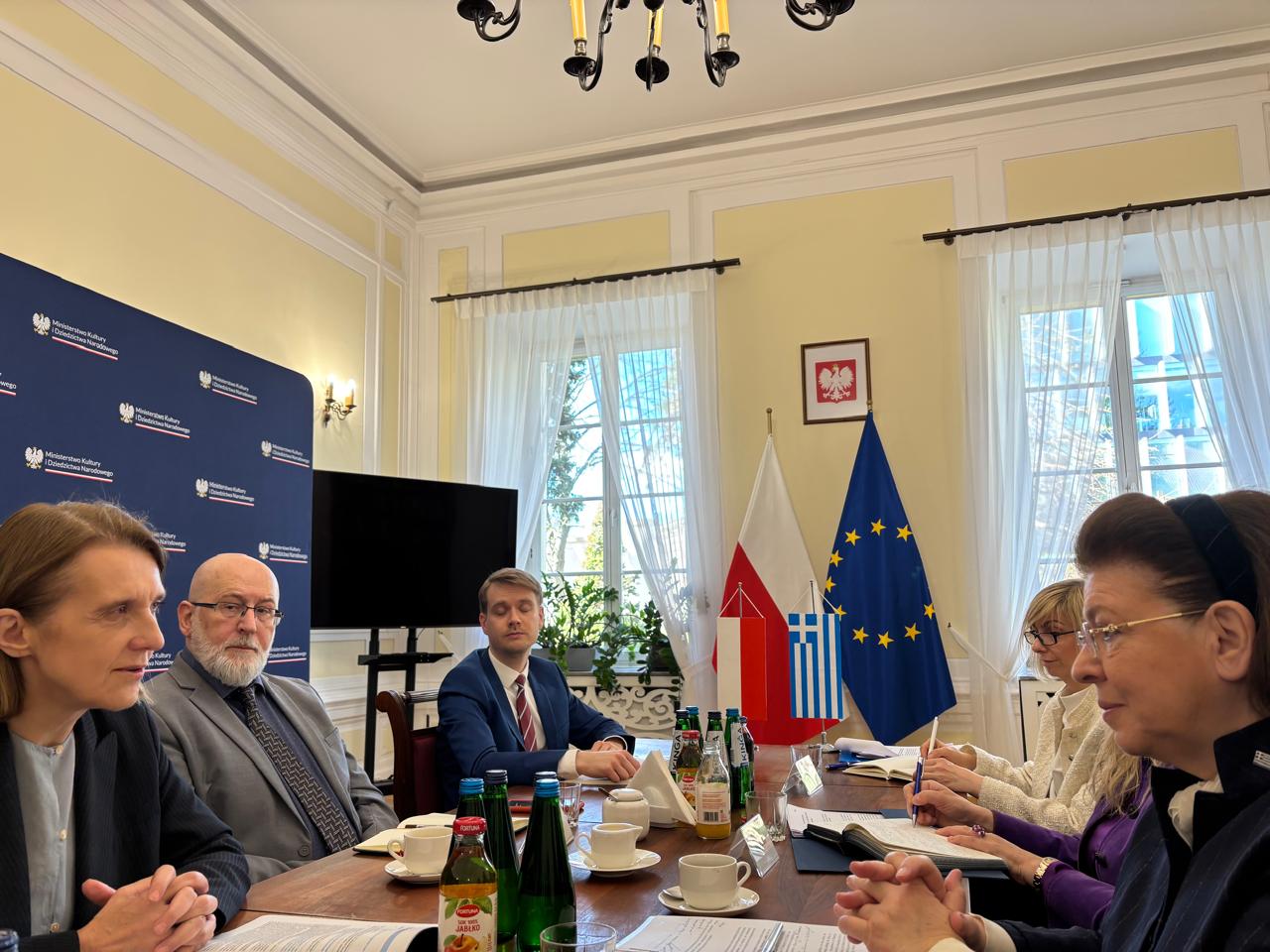 Η Hanna Wróblewska επανέλαβε εμφατικά τη στήριξη της πολωνικής κυβέρνησης στο ελληνικό αίτημα για την οριστική επανένωση των Παρθενωνείων Γλυπτών, στην Αθήνα. Η Λίνα Μενδώνη, έθεσε το θέμα της επιστροφής στο Εβραϊκό Μουσείο της Αθήνας των 76 ελληνοεβραϊκών κειμηλίων. Η Υπουργός Πολιτισμού ανέφερε «αναγνωρίζουμε τις γραφειοκρατικές δυσκολίες που απαιτούνται, στη διαδικασία των επαναπατρισμών. Όμως είναι πολύ σημαντικό για την Ελλάδα και την ελληνική εβραϊκή κοινότητα τα κειμήλια αυτά να επιστρέψουν στον τόπο τους. Η διατήρηση της ιστορικής μνήμης είναι χρέος μας απέναντι στις εβραϊκές ελληνικές κοινότητες, στους συγγενείς εκείνων που δολοφονήθηκαν στα κρεματόρια, αλλά και απέναντι στις μελλοντικές γενιές. Γνωρίζω ότι και η δική σας πλευρά έχει την ίδια προσέγγιση».